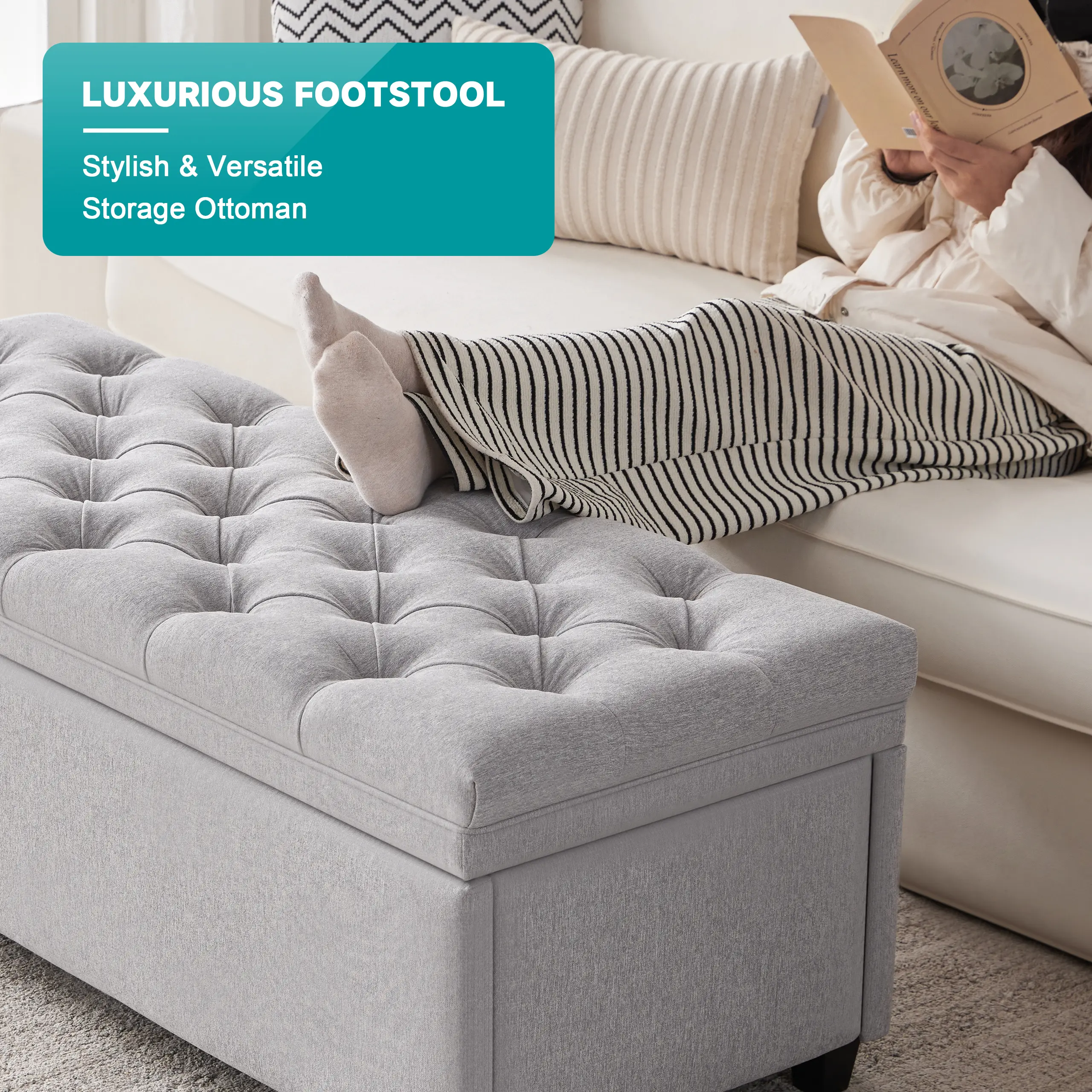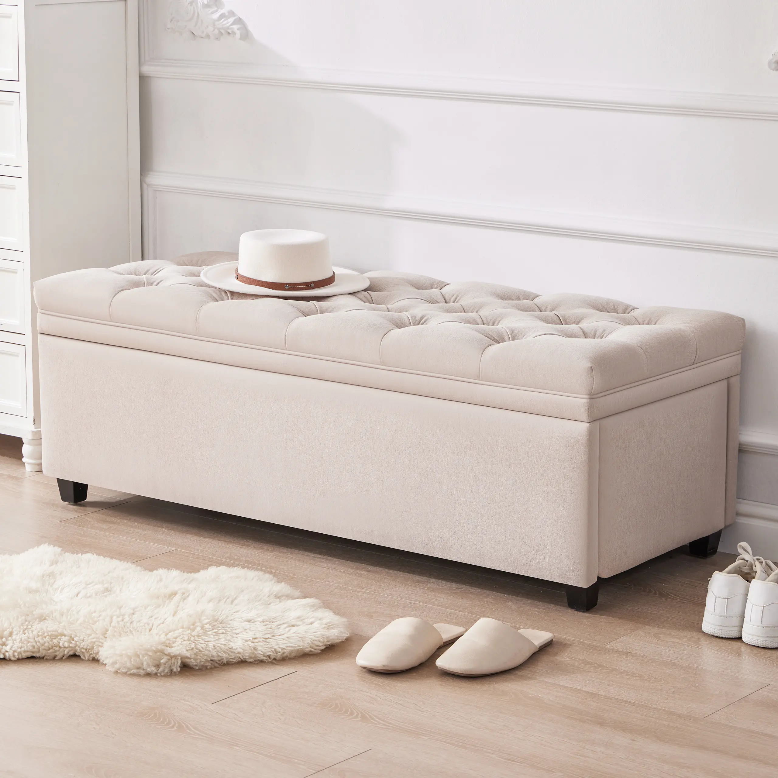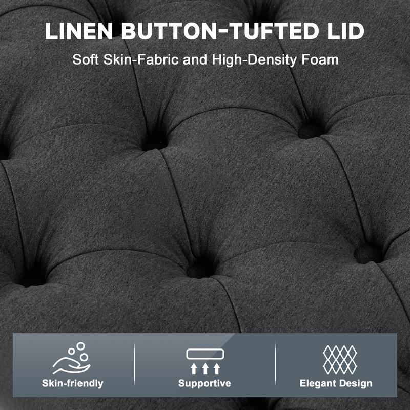 ·Modern Minimalist Design: The tufted cushion design combines with a rectangular shape, while the neutral linen fabric of the ottoman storage bench effortlessly blends with both modern and classic styles, making it a versatile addition to any home decor