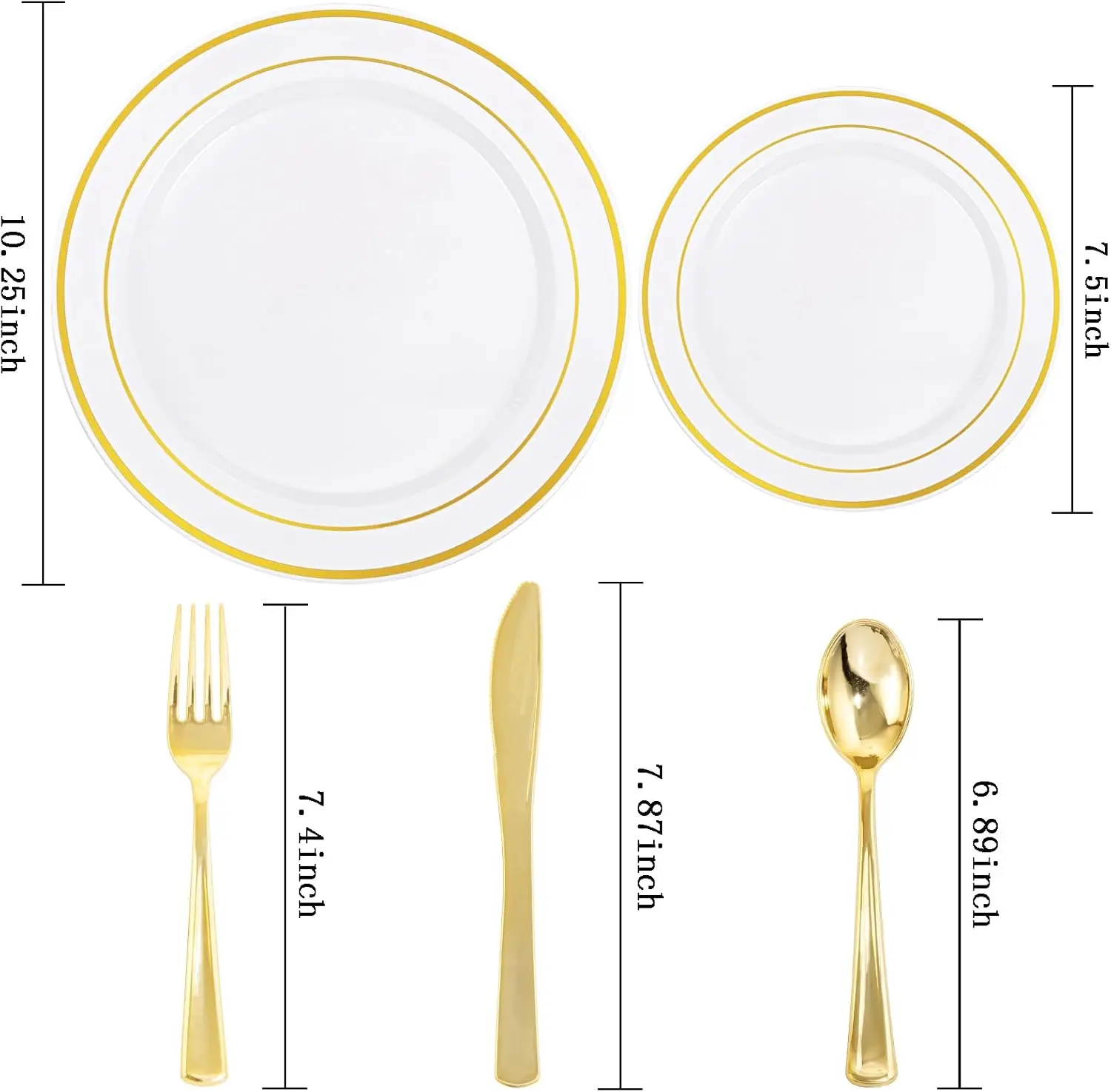 500Gold/Silver:Plastic Plates Disposable for 25 Guests Include: 100 Gold Rim Dinner Plates, 100 Salad Plates, 100 Plastic Silverware Set, Perfect Fancy Disposable Plates for Party and Wedding