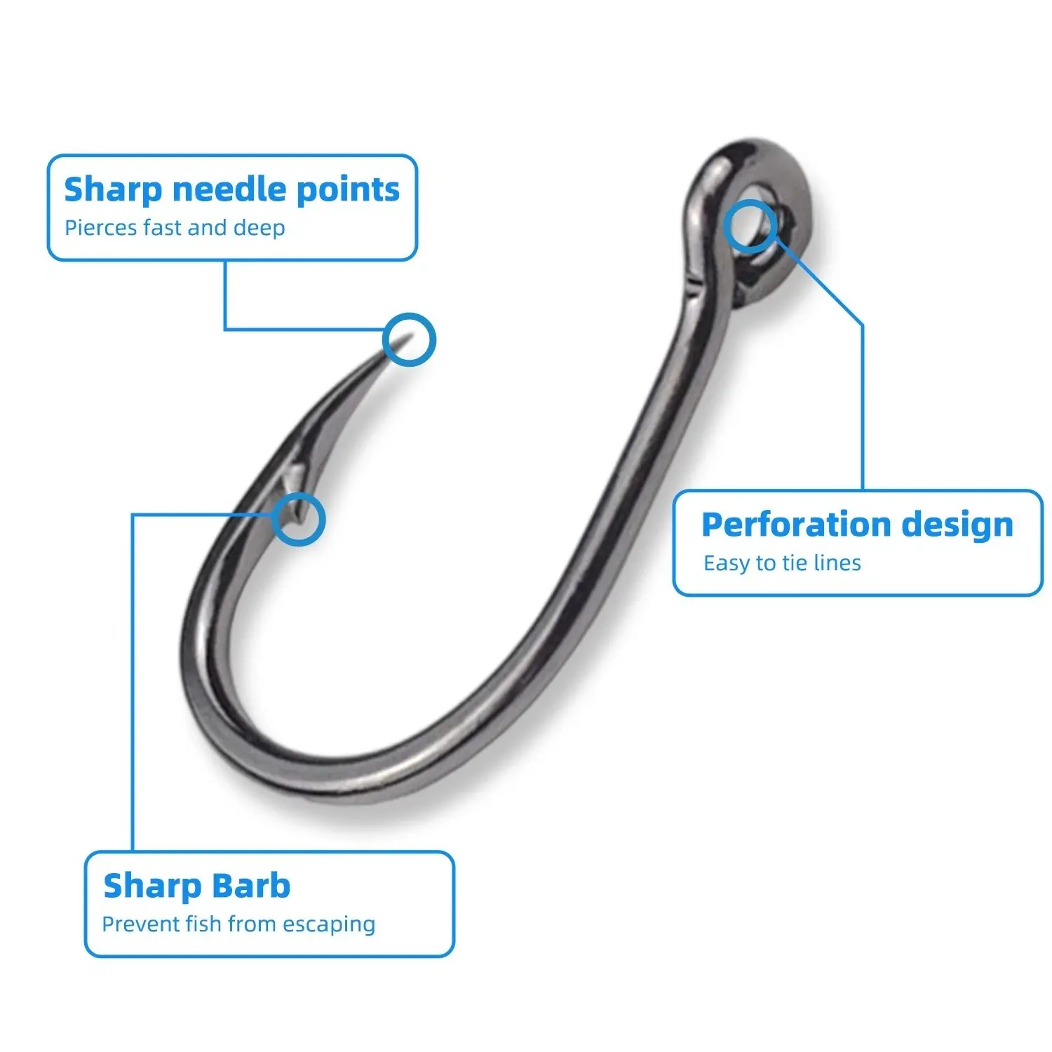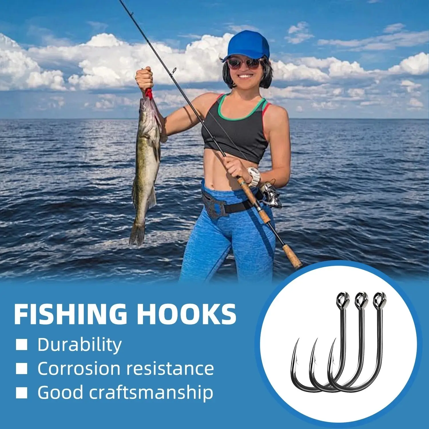 ·Sharp and Easy to Use. These hooks have a sharp, curved design for precise catches. Great for catching fish like catfish, bass, and more.