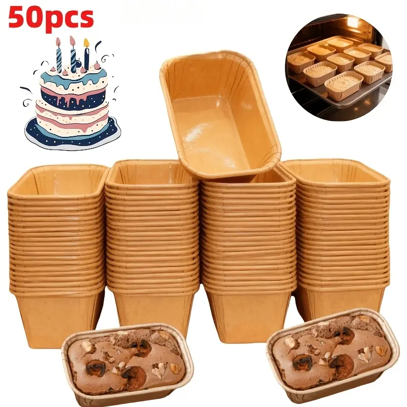 5. 50pcs Non-Stick Rectangular Baking Cups | Stackable, Even Baking for Bread, Cake, Muffins | Leakproof Grooved Edges, Reusable | Oven Safe | Ideal for Pastry Making, Holiday Baking | Space Saving
