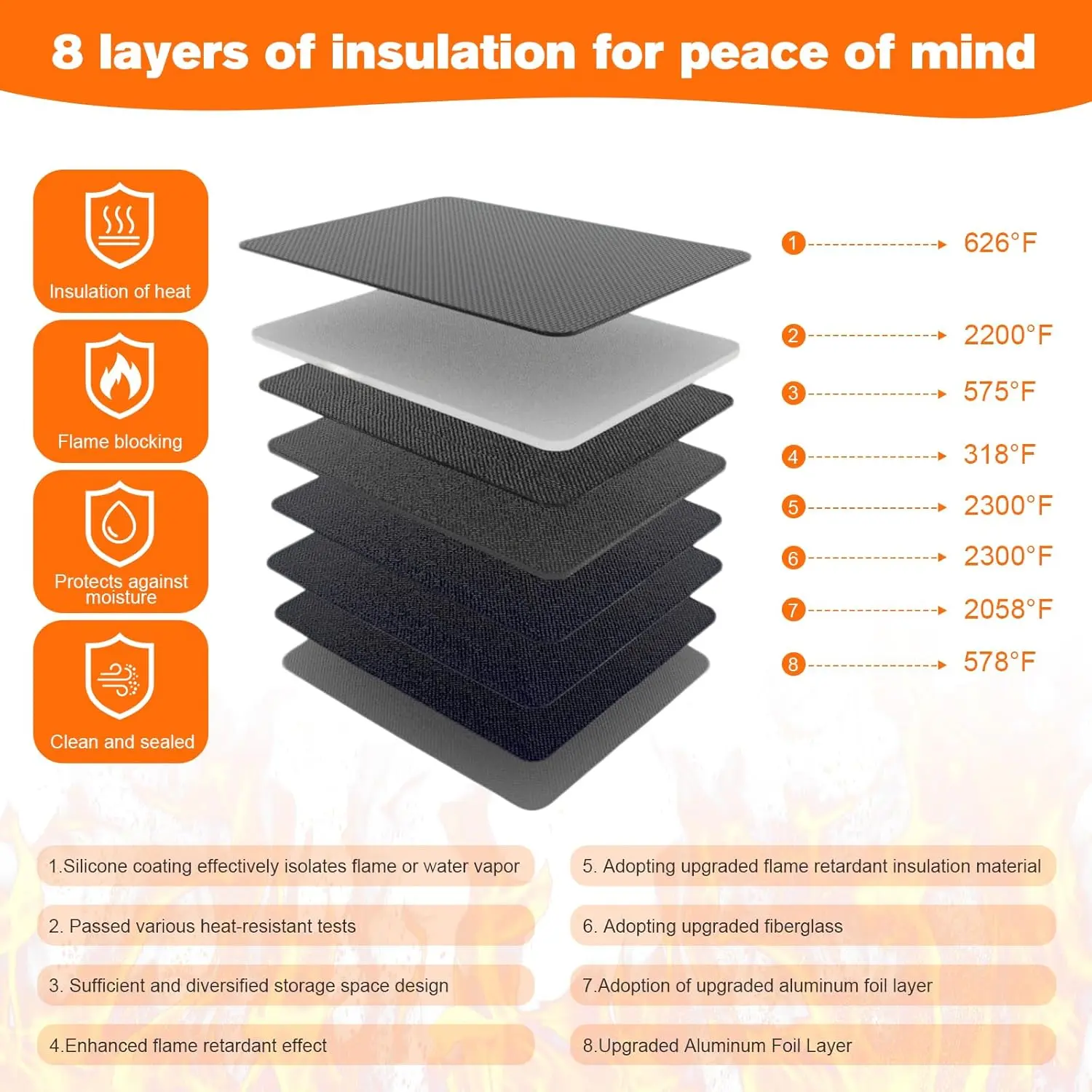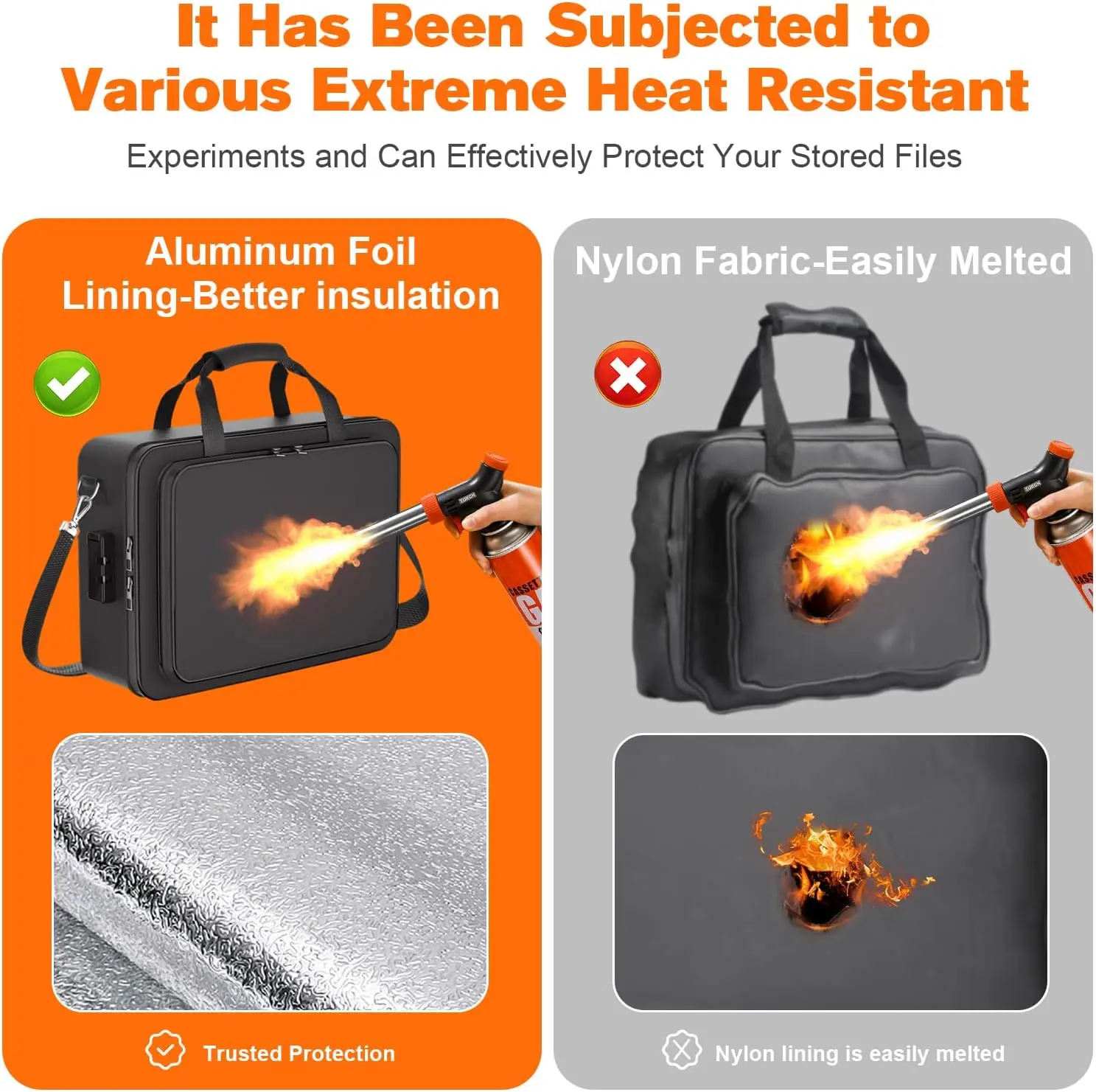 【5200°F Fireproof & Secure Locking System】protect your valuables with this fireproof box engineered to withstand temperatures up to 5200°f. dual-layer insulation (fire-resistant -coated cotton + aluminum foil) ensures double protection against flames and heat, passed the heat resistance test. the fireproof document safe box features a reinforced zipper and -resistant lining, safeguarding , legal files, and electronics in fires, floods, or .