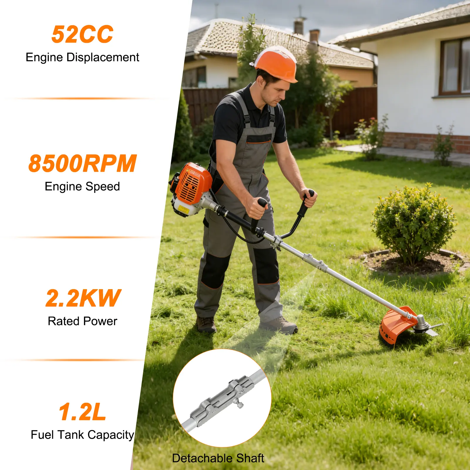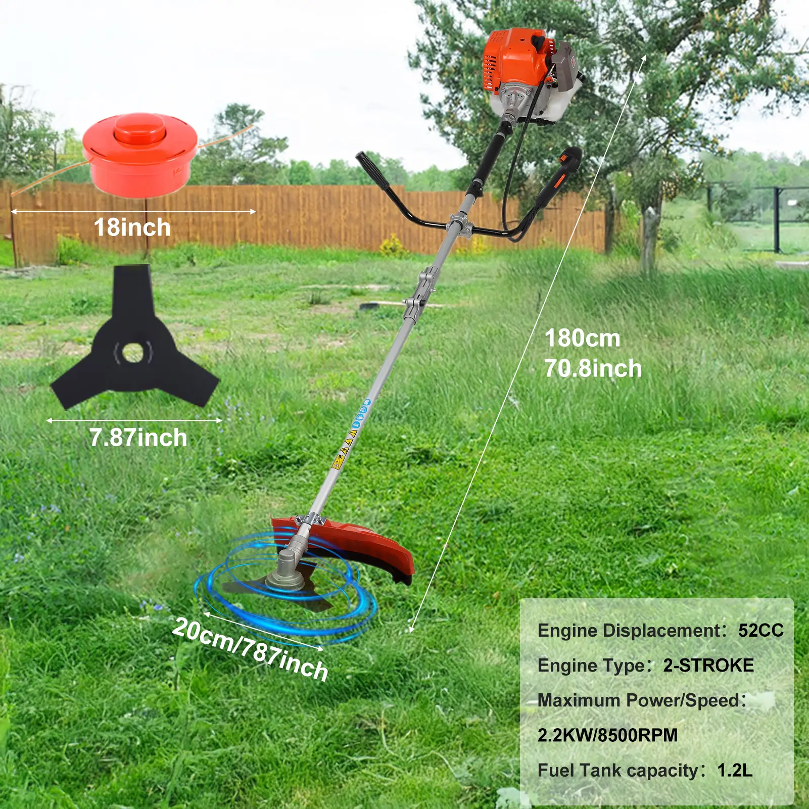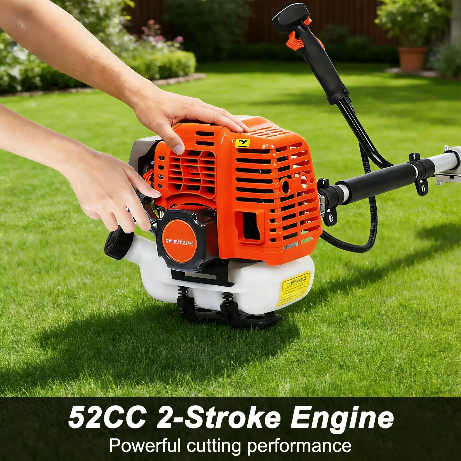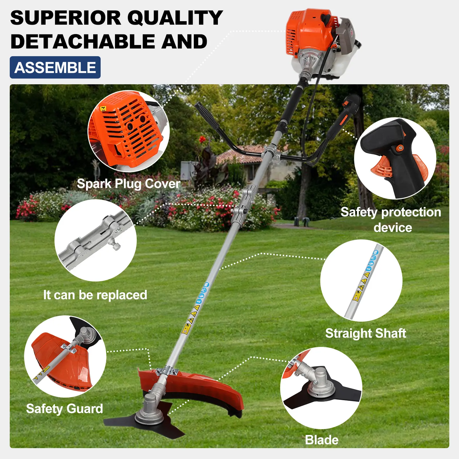 Powerful Motor & Ergonomic Handle: Since the gas weed eater has a powerful motor, it brings long endurance and high speed operation. Featuring ergonomic handle design, the gas weed eater is easy to grip and improve working efficiency.