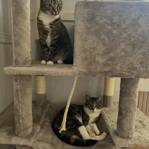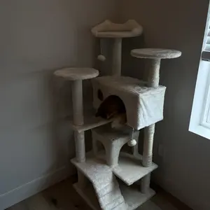 I was excited to put this cat tree together with my son and nephews. Once we scanned the barcode and watched the video, assembly was easy. My kitten loves it, and I’d definitely recommend it to anyone looking for a cat tree. 🐾