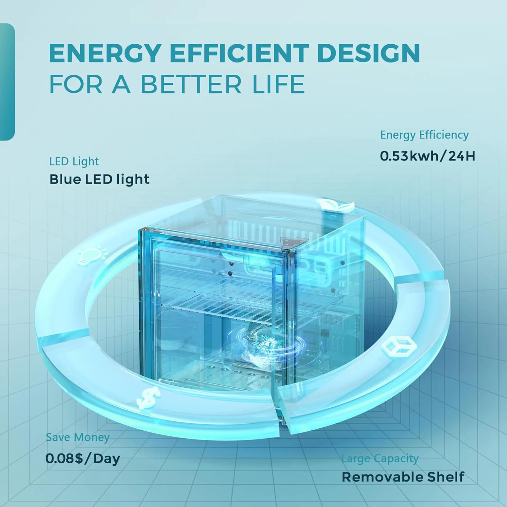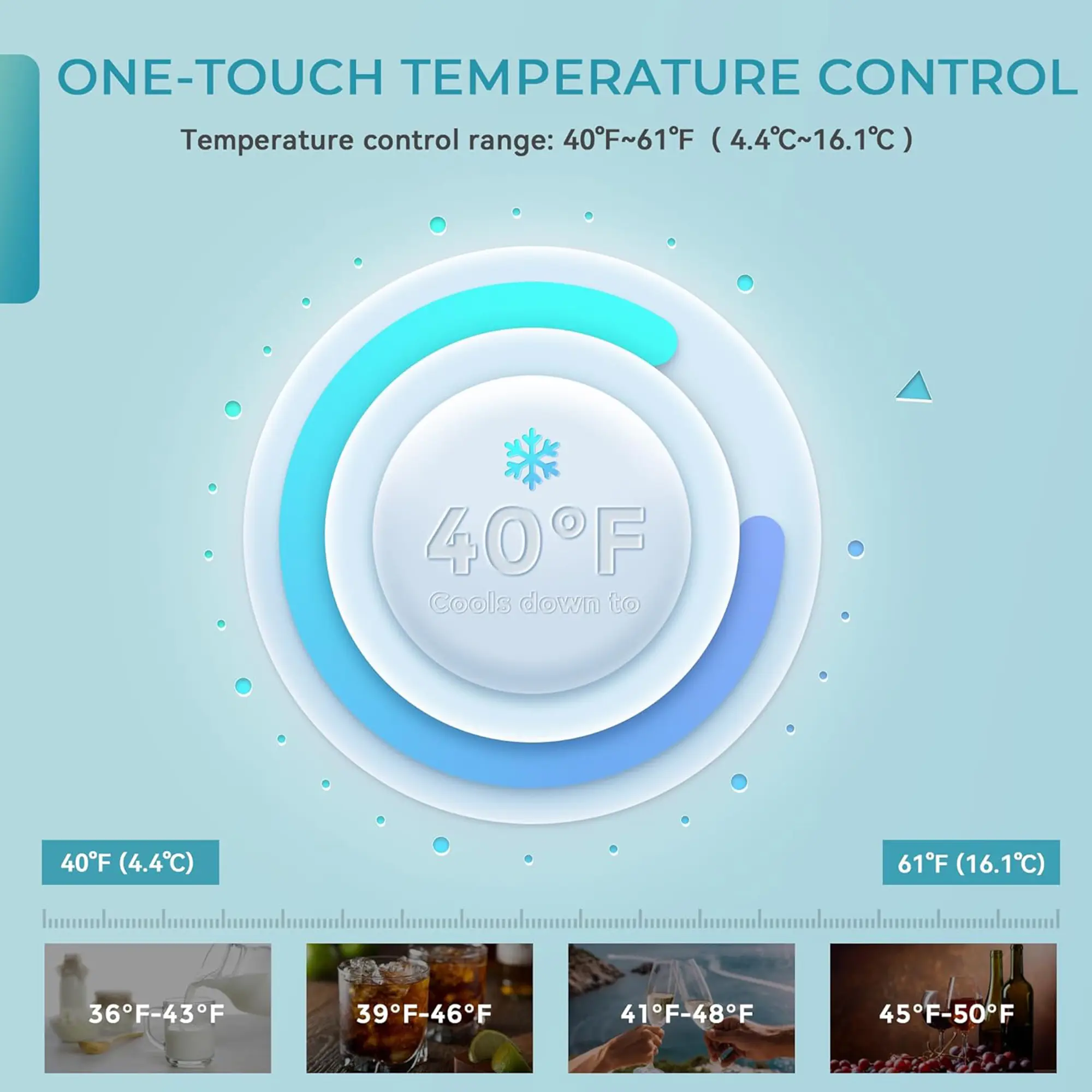 ·CONTROL PANEL-The mini refrigerator can adjust the temperature (40-61°F) through the smart panel.The panel is also designed with a switch for LEDs, the soft blue light is great when it lights up inside the small fridge to add an elegant atmosphere