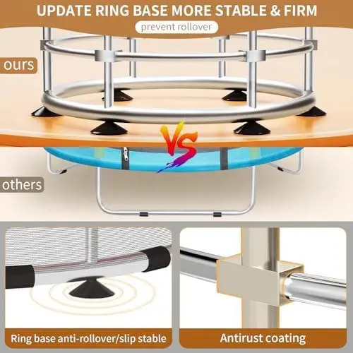 ·【 Rust-proof material upgrade & Bearing 440 LBS 】 5.5FT-Maximum bearing 220 LBS, bottom thickened lateral support. The built-in galvanized steel pipe of the trampoline is effectively waterproof and rust-proof, and the anti-rust coating is upgraded according to the joint position suggested by customers to ensure a safe jumping experience. Widen U-shaped base to prevent children from tipping over.