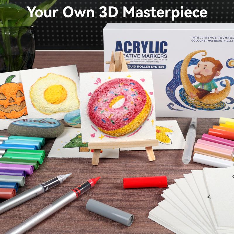·24 Acrylic Creative Markers (Brush Tip, Direct Ink Roller System)