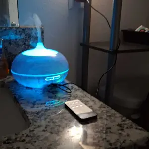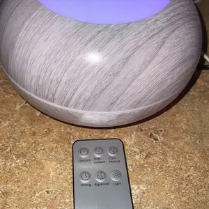 550ml Wood Grain Aromatherapy Diffuser with Remote, 6 Essential Oils & 7 Color LED Light