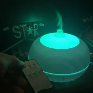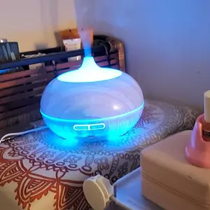 550ml Wood Grain Aromatherapy Diffuser with Remote, 6 Essential Oils & 7 Color LED Light