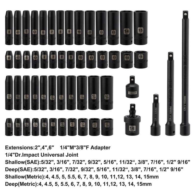 55PCS 1/4 Inch Drive Master Impact Socket Set, Metric/SAE, Deep/Shallow, 6 Point, CR-V, 5/32 Inch - 9/16 Inch, 4mm 15mm, with Extensions, Adapters, Universal Joint, dealsforyoudays #impactsocketset #impactdriver #tooladvisor #tiktokshopcreatorpicks #creatoricons  @CASOMAN TOOLS  impact socket set 3 8 impact socket set 1 2 inch 1½ impact deep socket set impact socket set impact socket set 1 2 3 8 inch impact socket set impact socket set 1 inch drive 1½ impact metric socket set impact socket set 450 pieces impact socket set 1 4