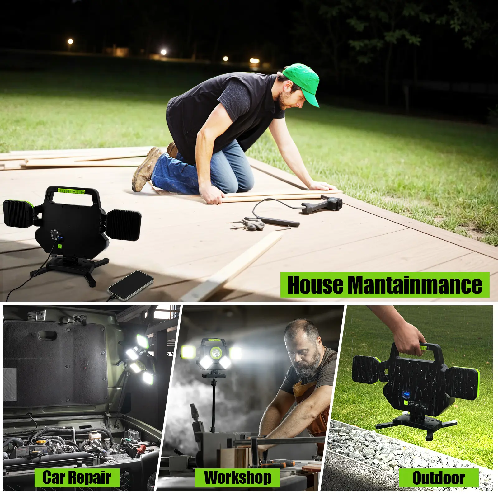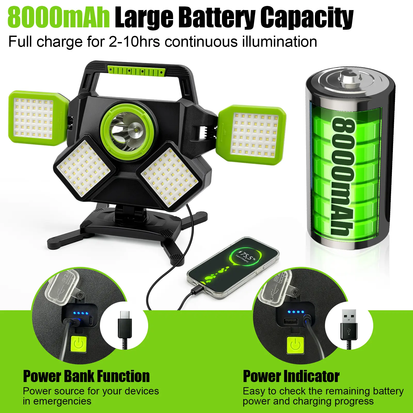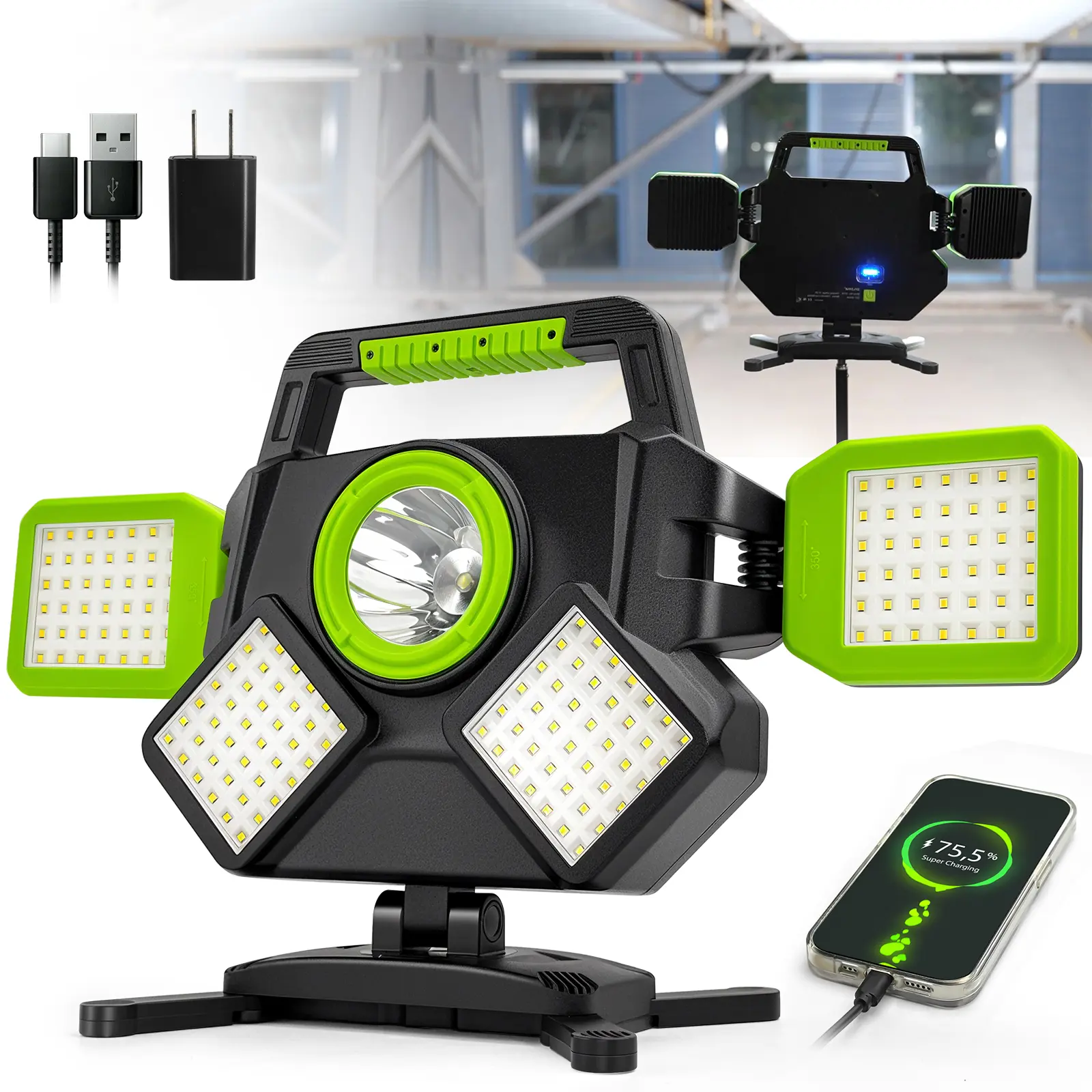5. 55W Rechargeable Work Light, 5000LM Magnetic Work Light, Foldable&360° Rotatable Led Work Light with 6 Light Modes, Powerbank, Portable Work Lights for Mechanic Jobsite Workshop Car Repairing