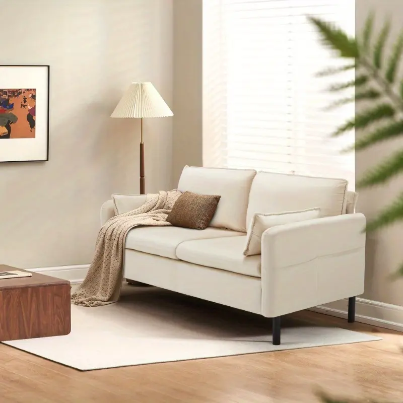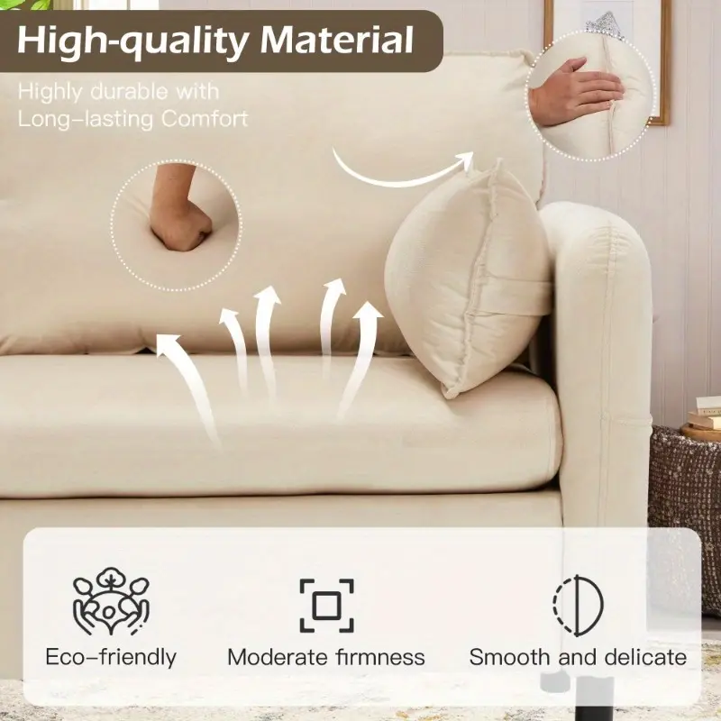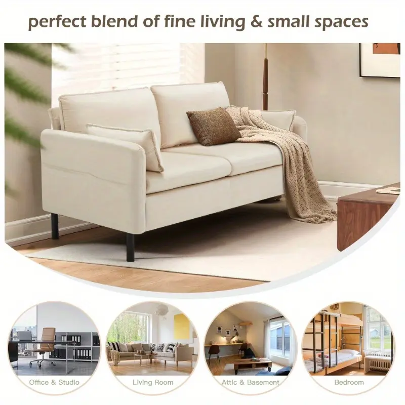 Wrapped in high-quality linen fabric, the loveseat sofa combines durability, softness, and breathability with a clean, modern look. Fine craftsmanship and refined stitching add elegance and sophistication, elevating both the style and quality of your living space.