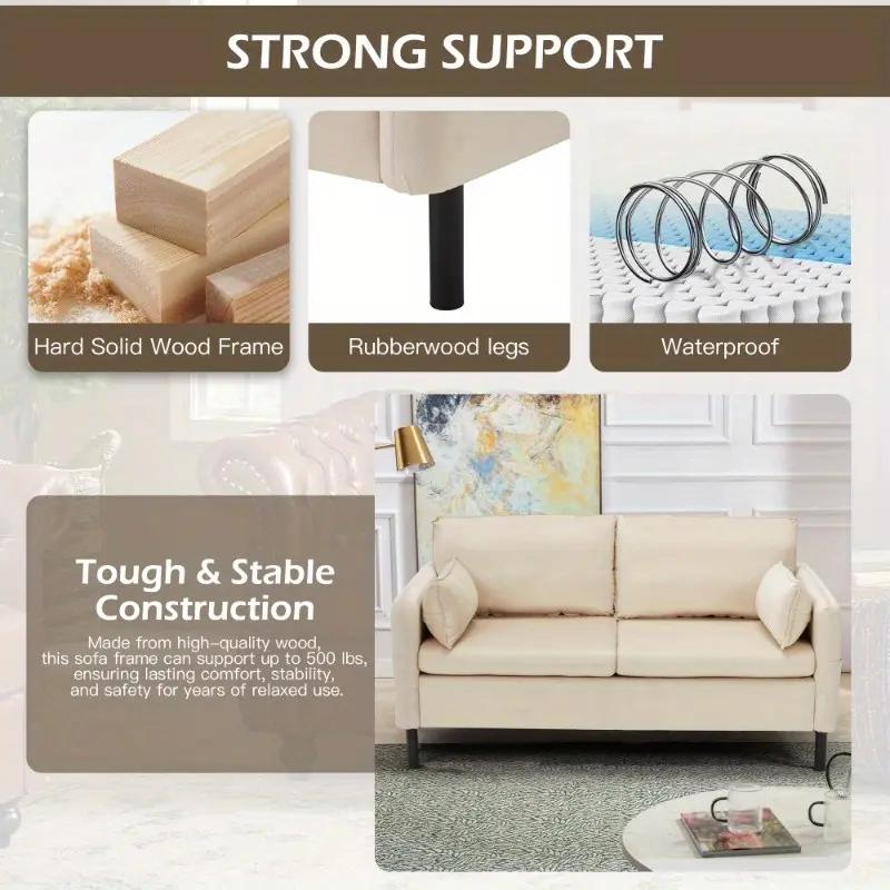 Constructed with a reinforced combination of solid wood and metal frame, this loveseat offers outstanding stability and durability. Designed to support up to 500 lbs, it ensures long-term safety, reliability, and structural strength for everyday use.