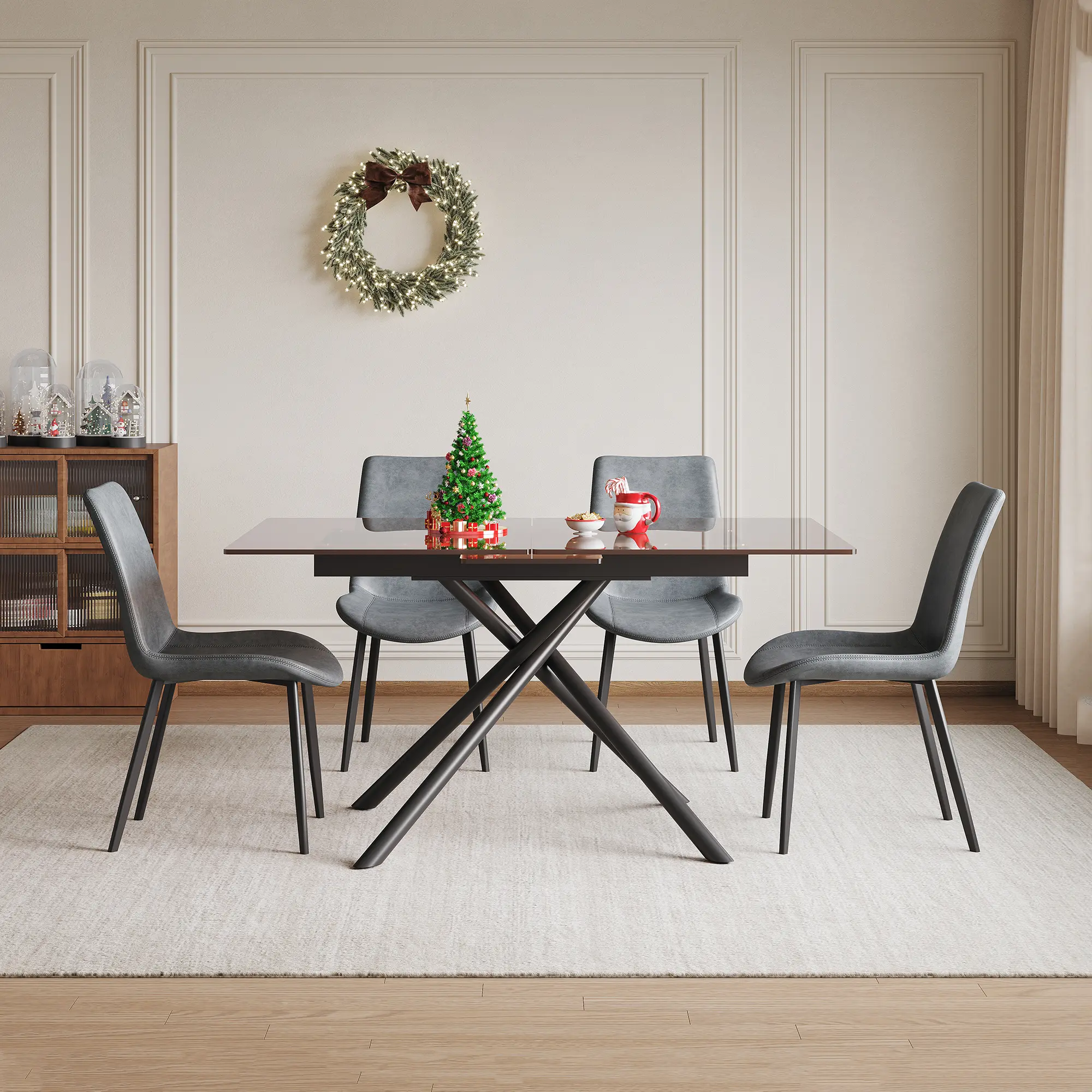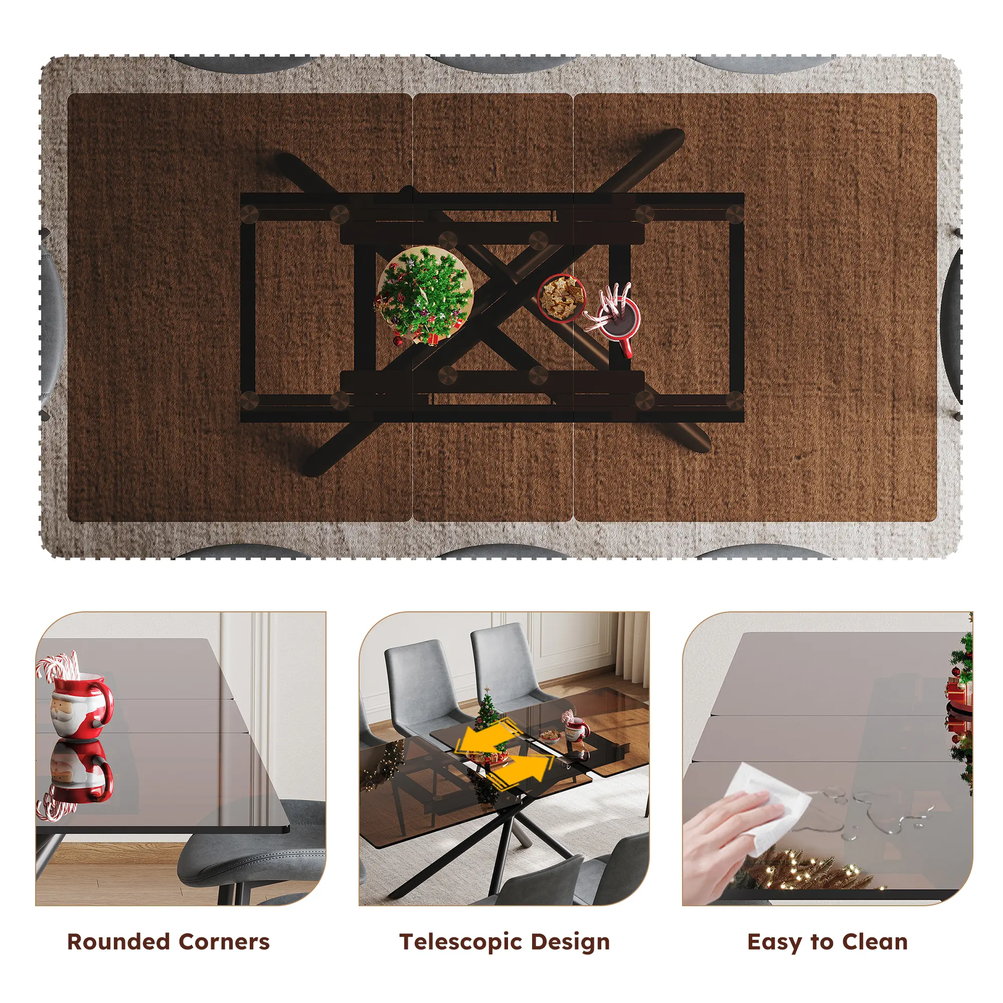 This 59" expandable table with a retractable leaf adjusts to fit 4 to 6 seats. Perfect for daily meals or parties, it maximizes functionality in small kitchens and apartments. The black sandblasted glass top resists scratches and fingerprints, wiping clean in seconds.