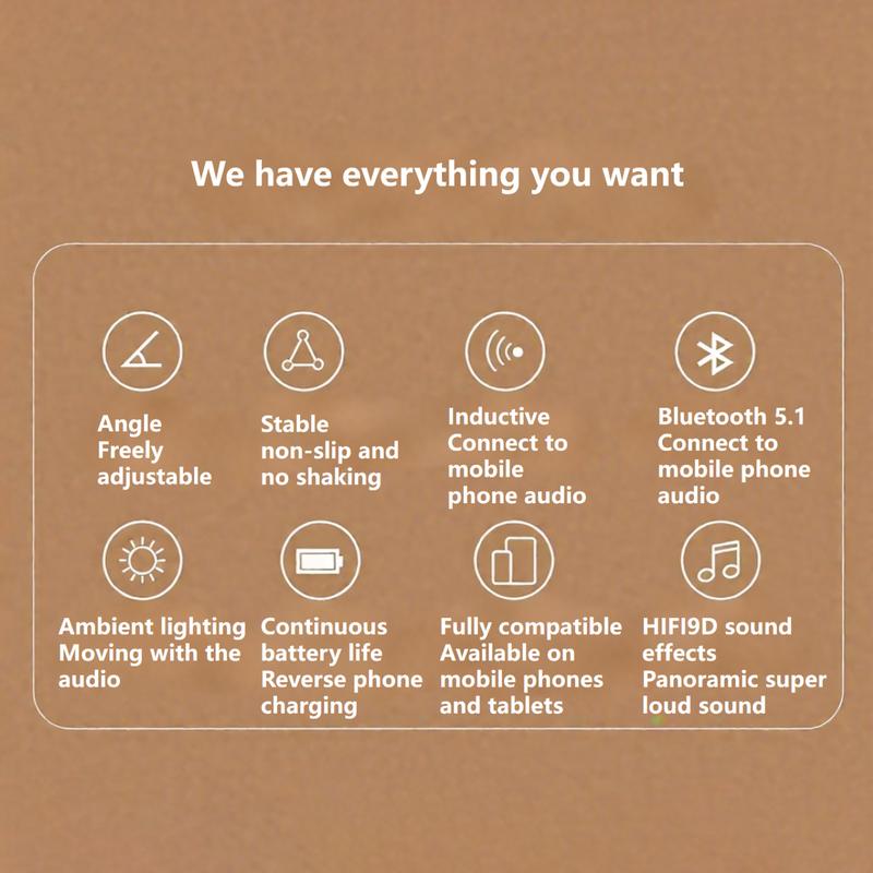 [Features a unique and fun 5-in-1 design]: A multifunctional device that combines wireless induction speaker, bluetooth speaker, charging, cell Phone Stand, and ambient light, with a built-in 5W power speaker that delivers high-definition stereo surround sound at any volume level for an enhanced audio experience. Our upgraded Bluetooth speaker comes with a USB port for charging in case of emergencies.