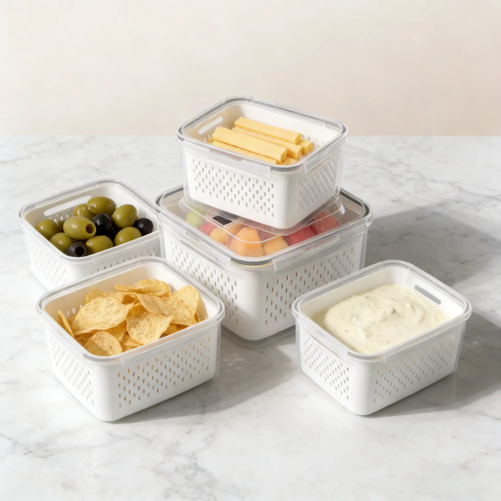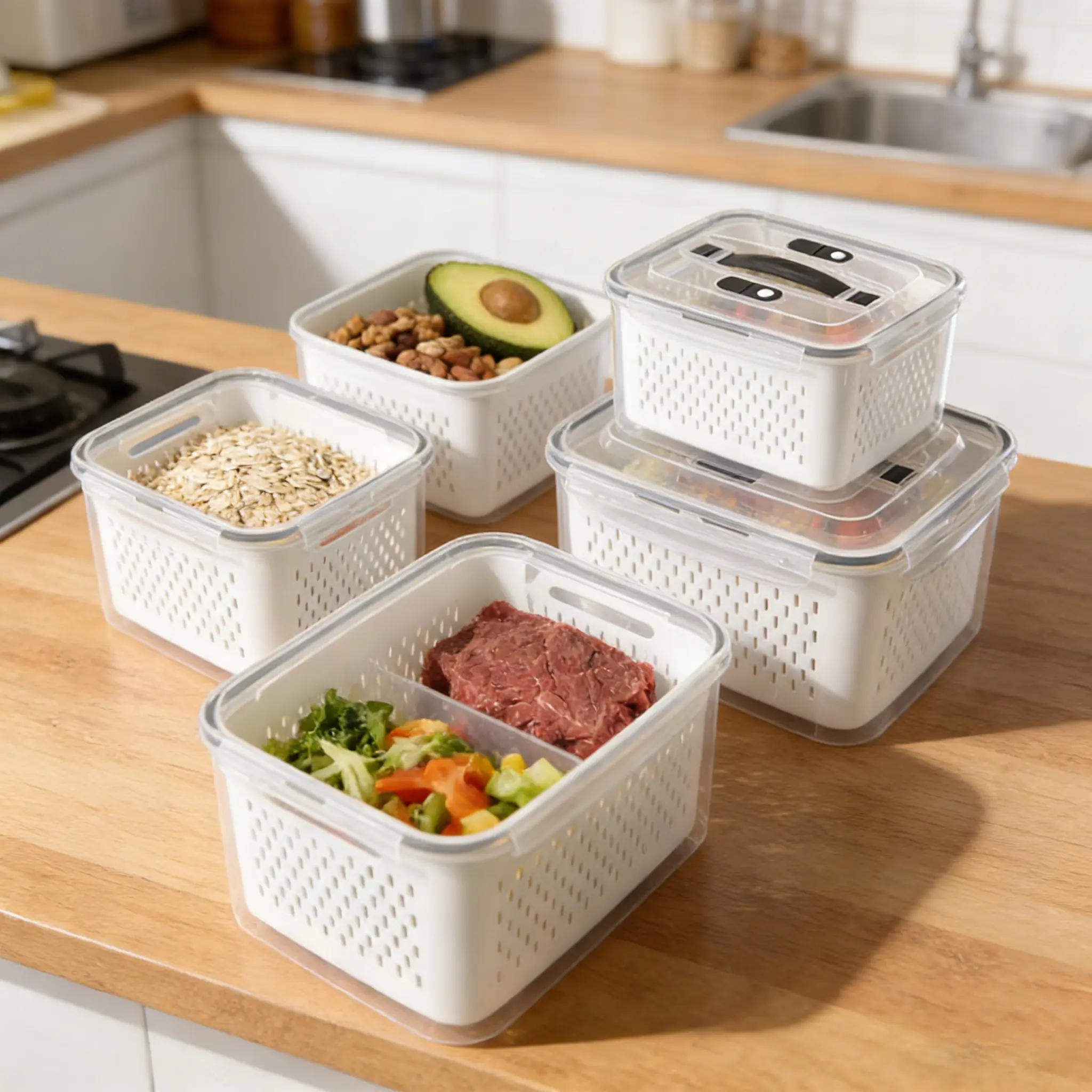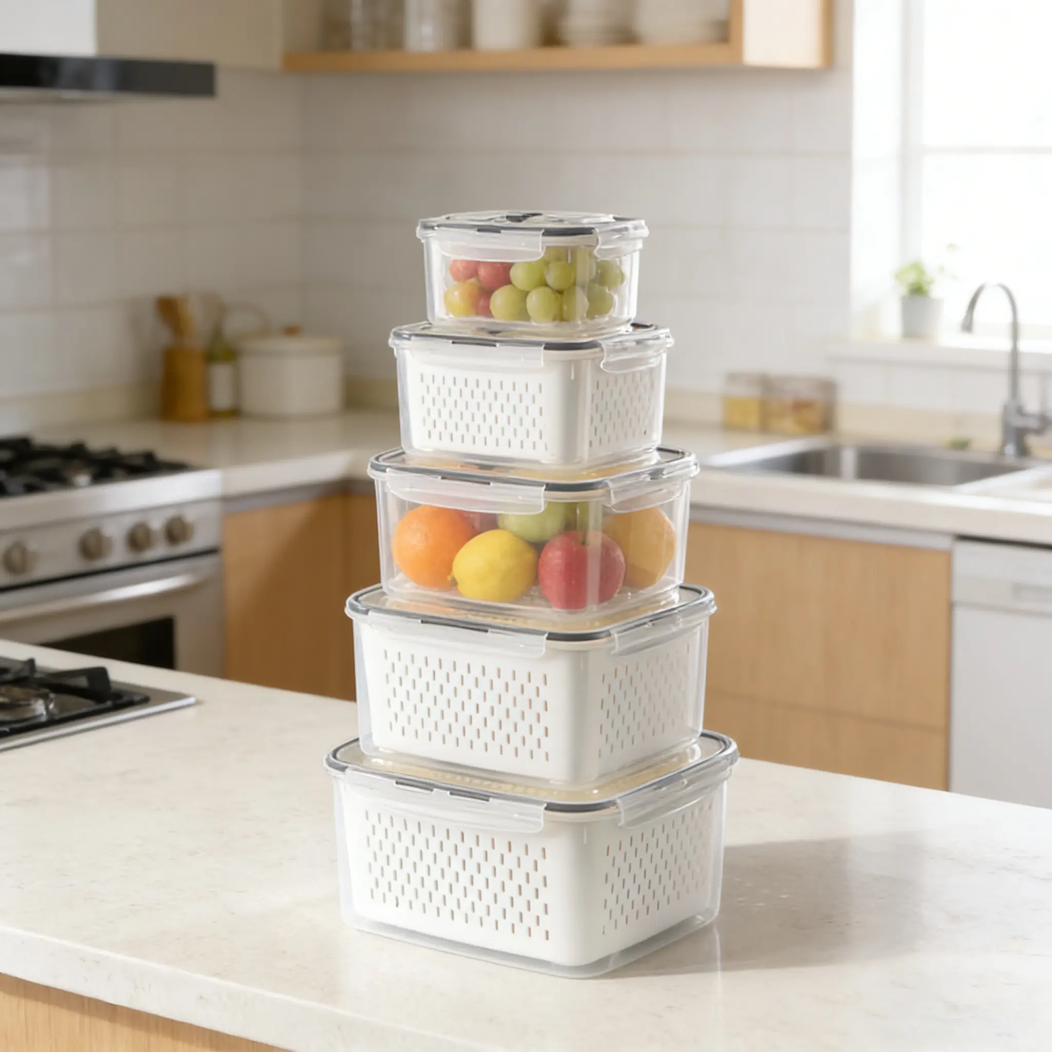 Sealed design + removable colander, double freshness lock for produce, effectively extends shelf life.