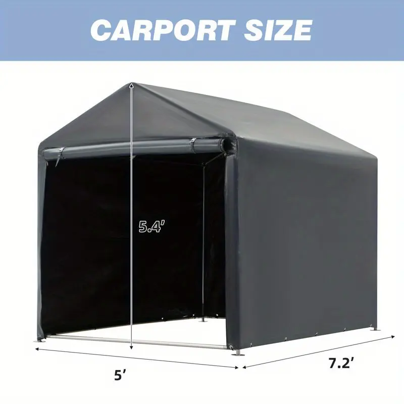 Measuring 5 x 7.2 x 5.4 ft, this compact outdoor storage shelter is ideal for motorcycles, bicycles, lawn mowers, garden tools, pool supplies, and firewood. Perfect for gardens, backyards, patios, or driveways. Designed with an upgraded pipe connection system and clear instructions, assembly is quick and tool-free for a smooth setup experience.