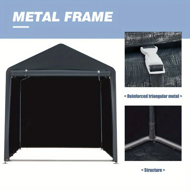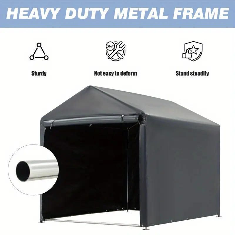 Constructed with a reinforced galvanized steel frame made of 24 × 0.9mm thick steel tubing, this portable storage shed offers enhanced strength and stability. The rust-resistant and corrosion-resistant structure ensures long-term outdoor durability without peeling or weakening over time.