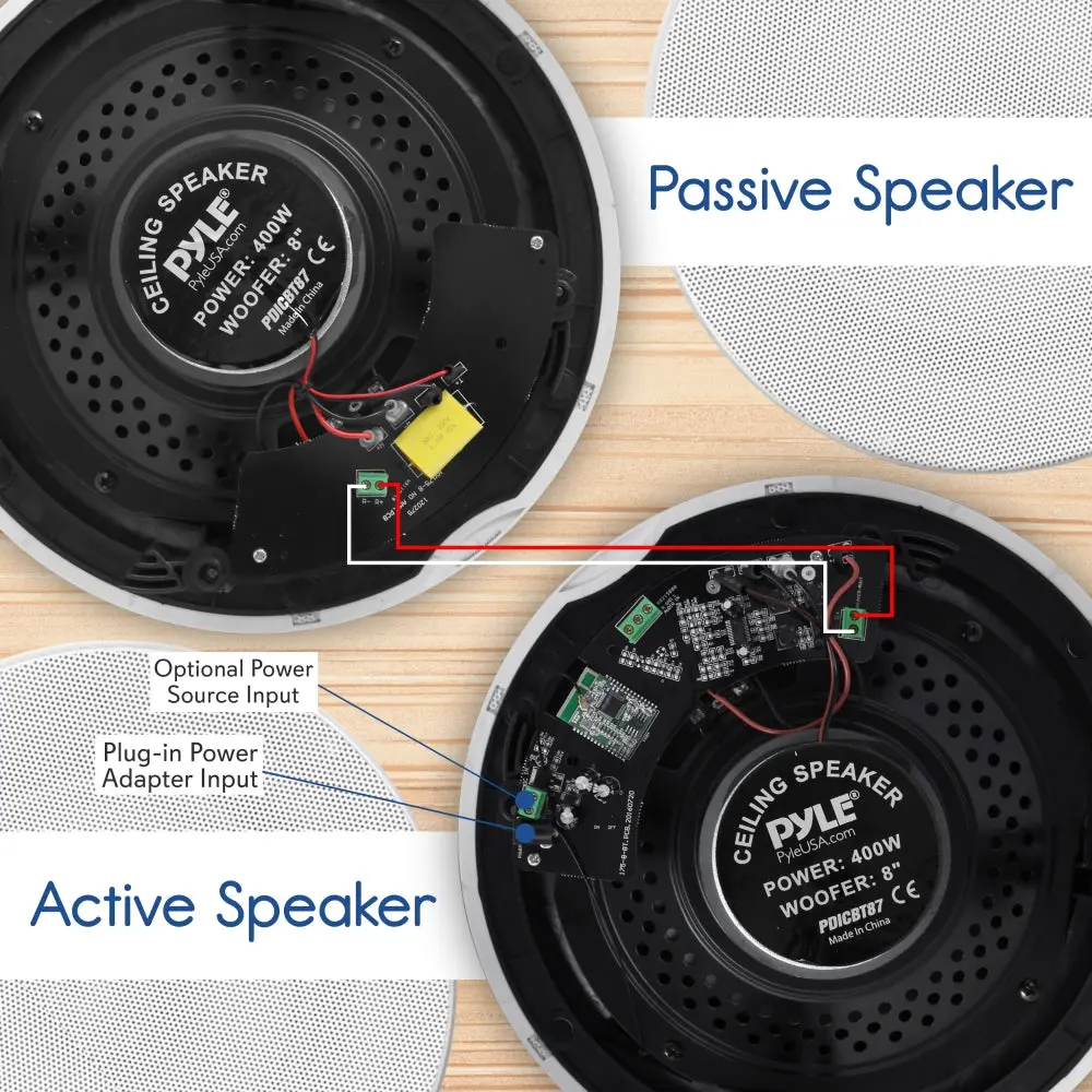 Dual 6.5’’ Bluetooth Ceiling / Wall Speaker Kit, (2) Flush Mount 2-Way Speakers, 300 Watt