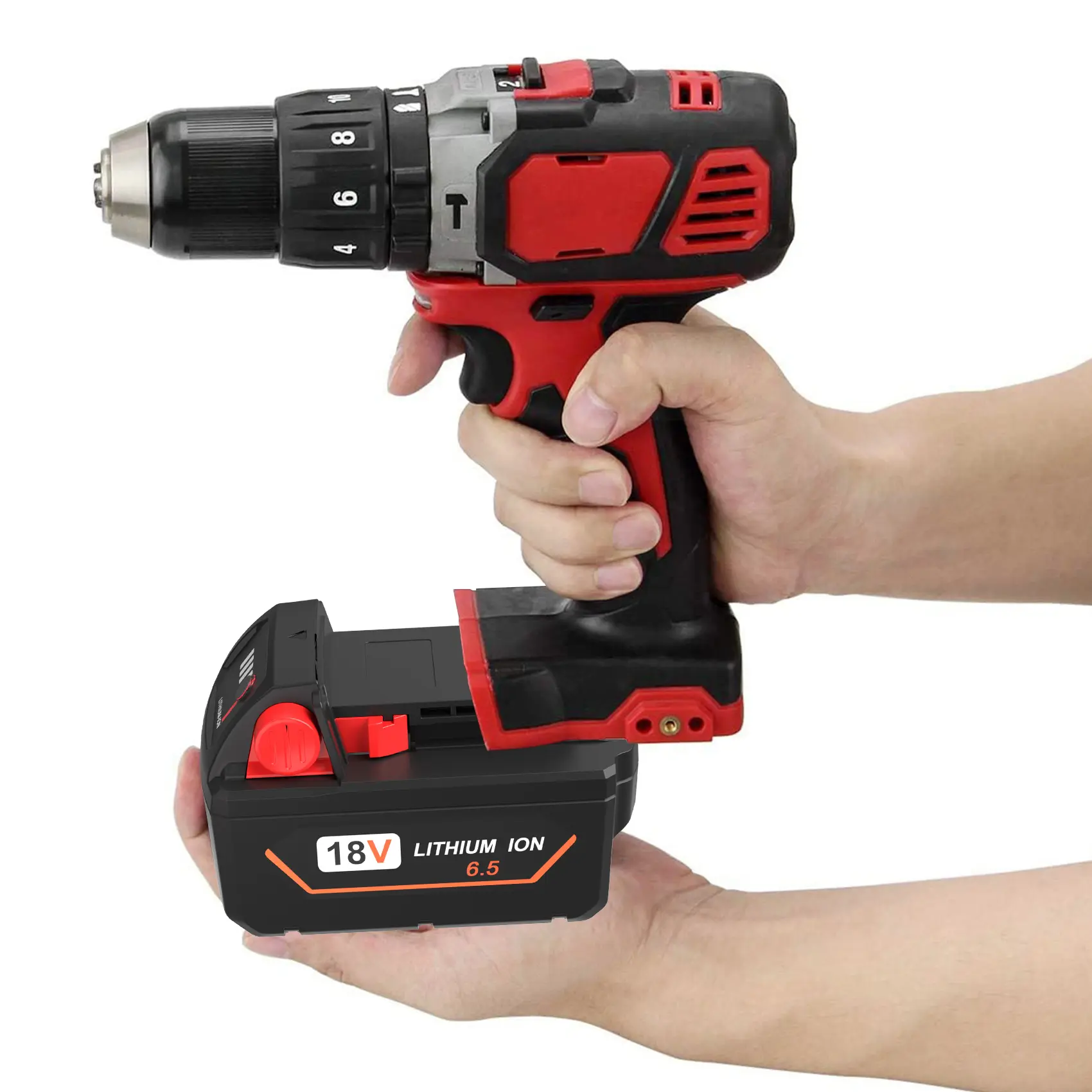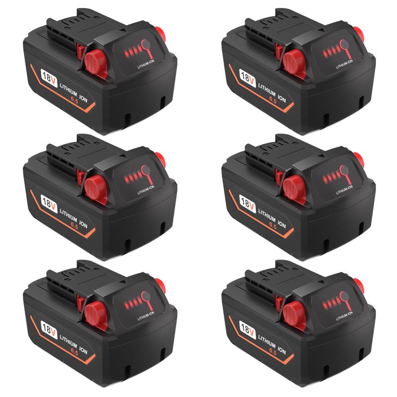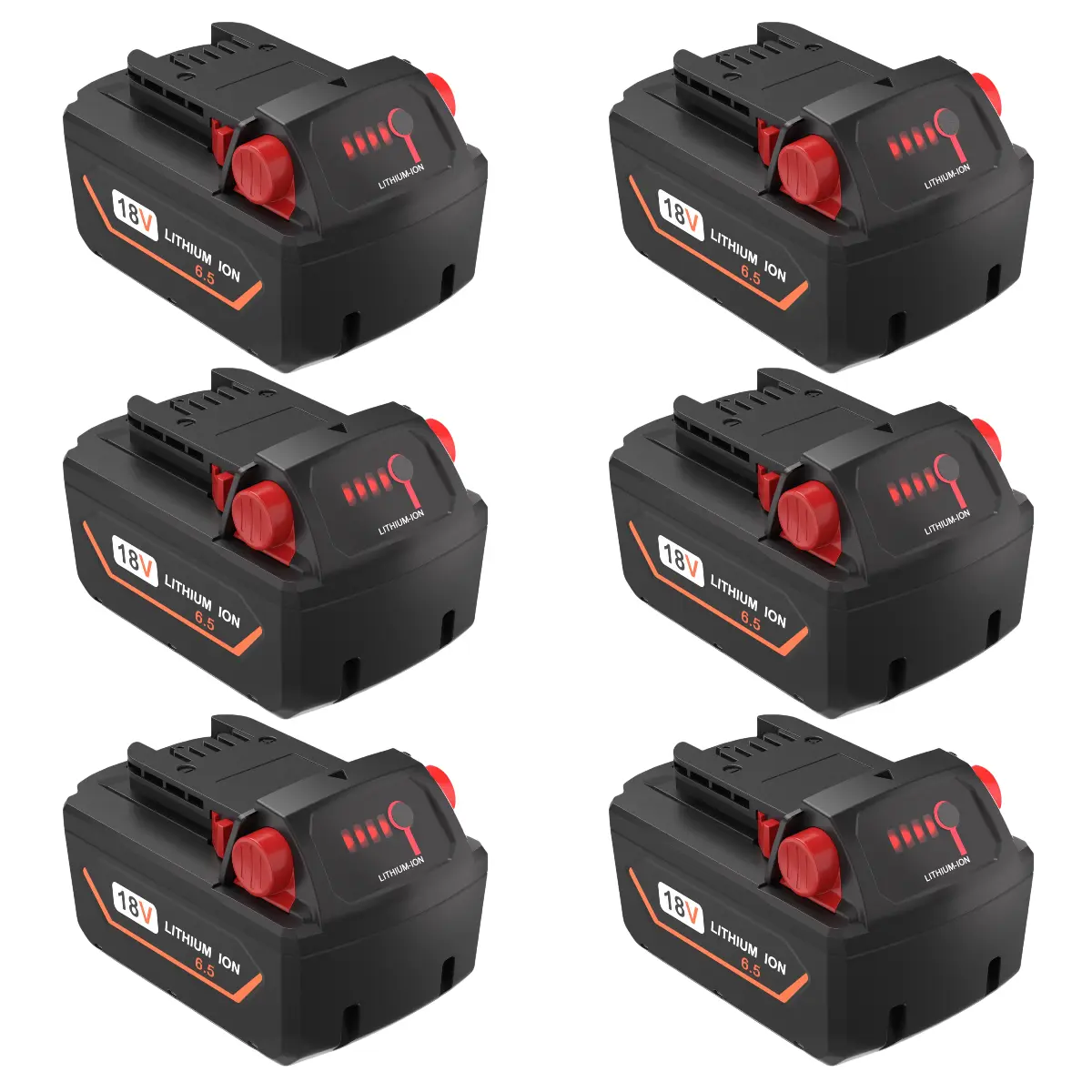 ·Replacement battery for Milwaukee ∧∧-18 battery: Capacity: 6500mAh/6.5Ah; Voltage: 18V; Battery type: Li-ion; Compatibility: Compatible with Milwaukee ∧∧-18 cordless power tools; Indicate light: you can check the remaining power by pressing the indicate light button.