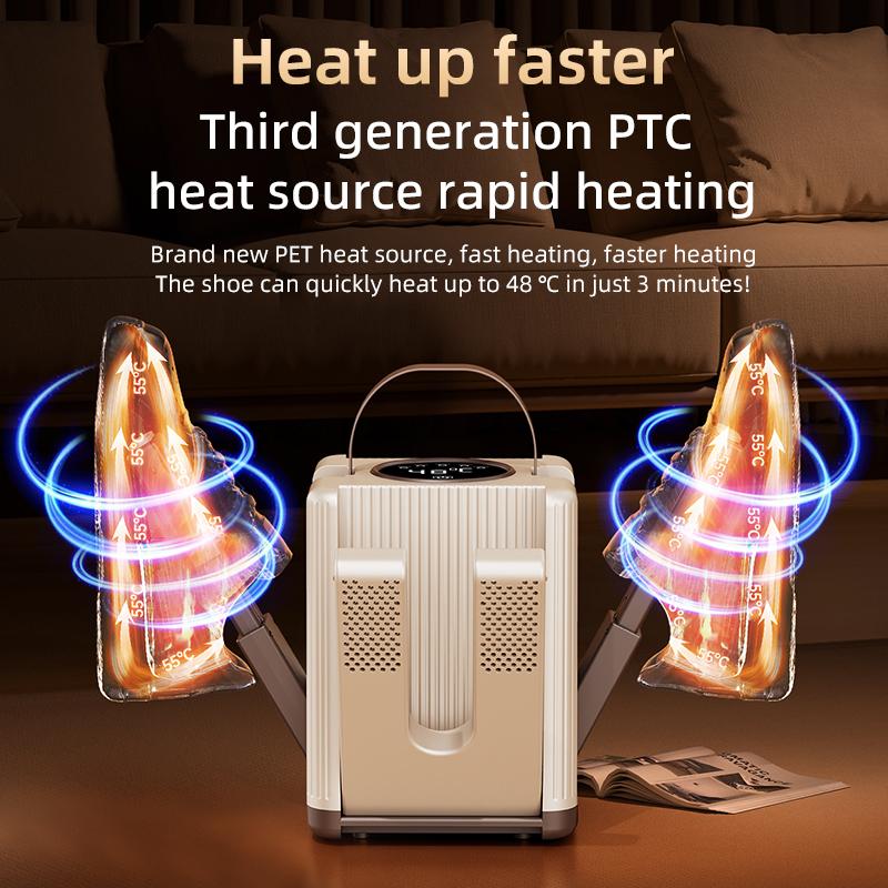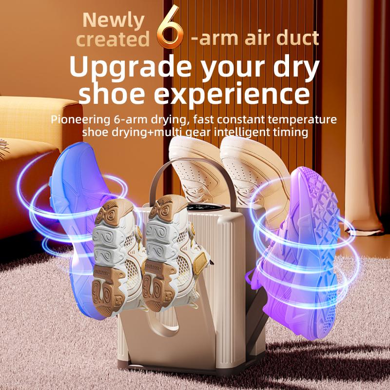 This innovative dryer features 6 arms for efficient drying. It offers 360° cyclic drying, ensuring even heat distribution. Portable and foldable, it's perfect for home and travel. Quick drying of shoes, socks, and gloves is guaranteed. The constant temperature system maintains uniformity during drying.