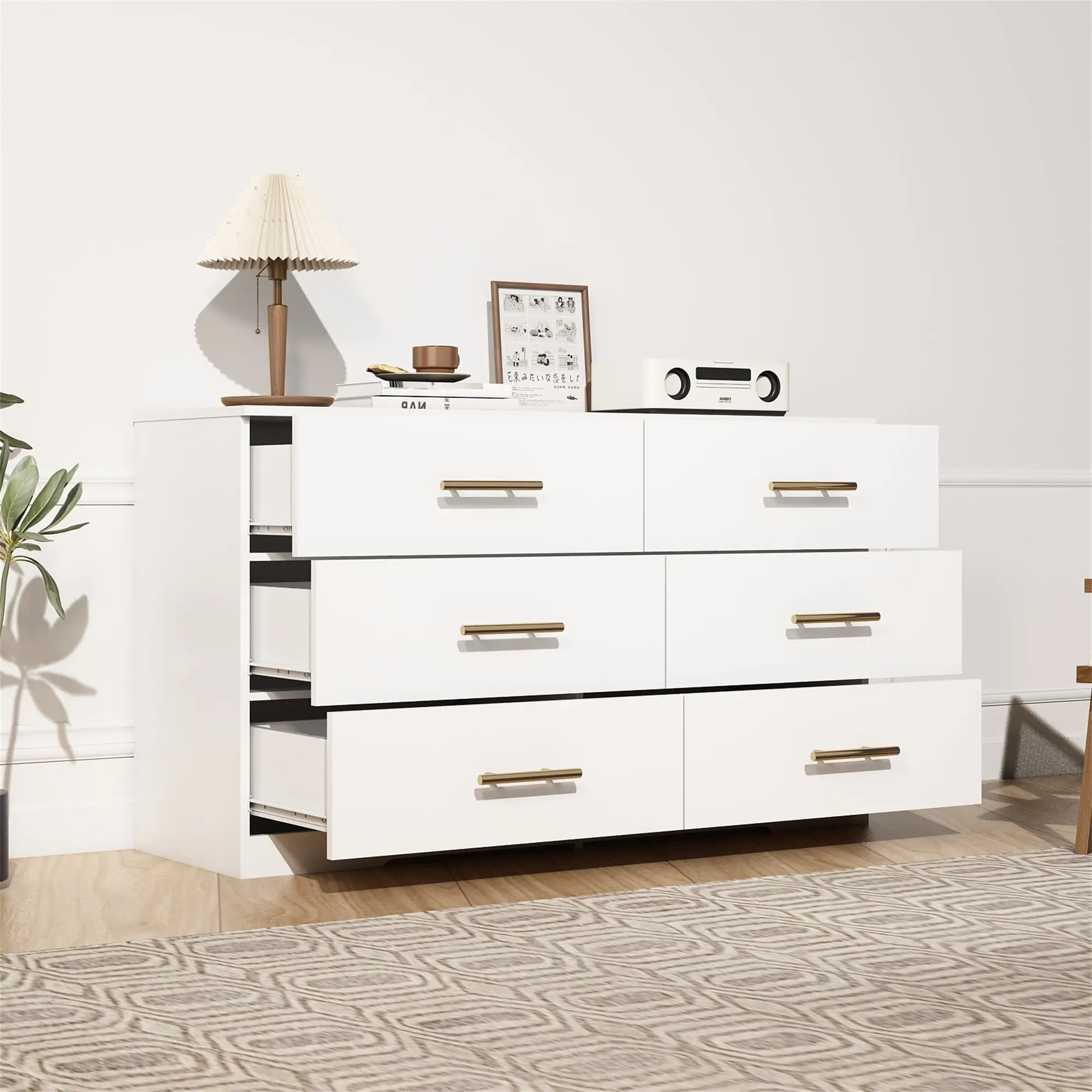 Canddidliike Dresser for Bedroom 6 Drawers Dresser Dressers & Chests of Drawers, White Dresser