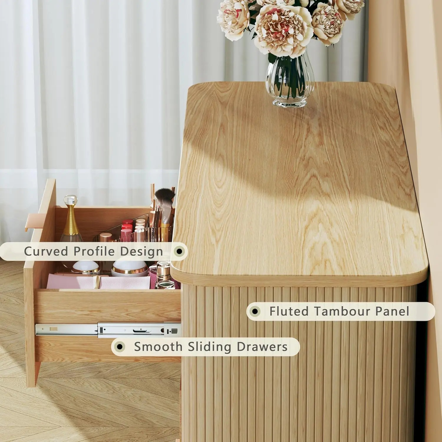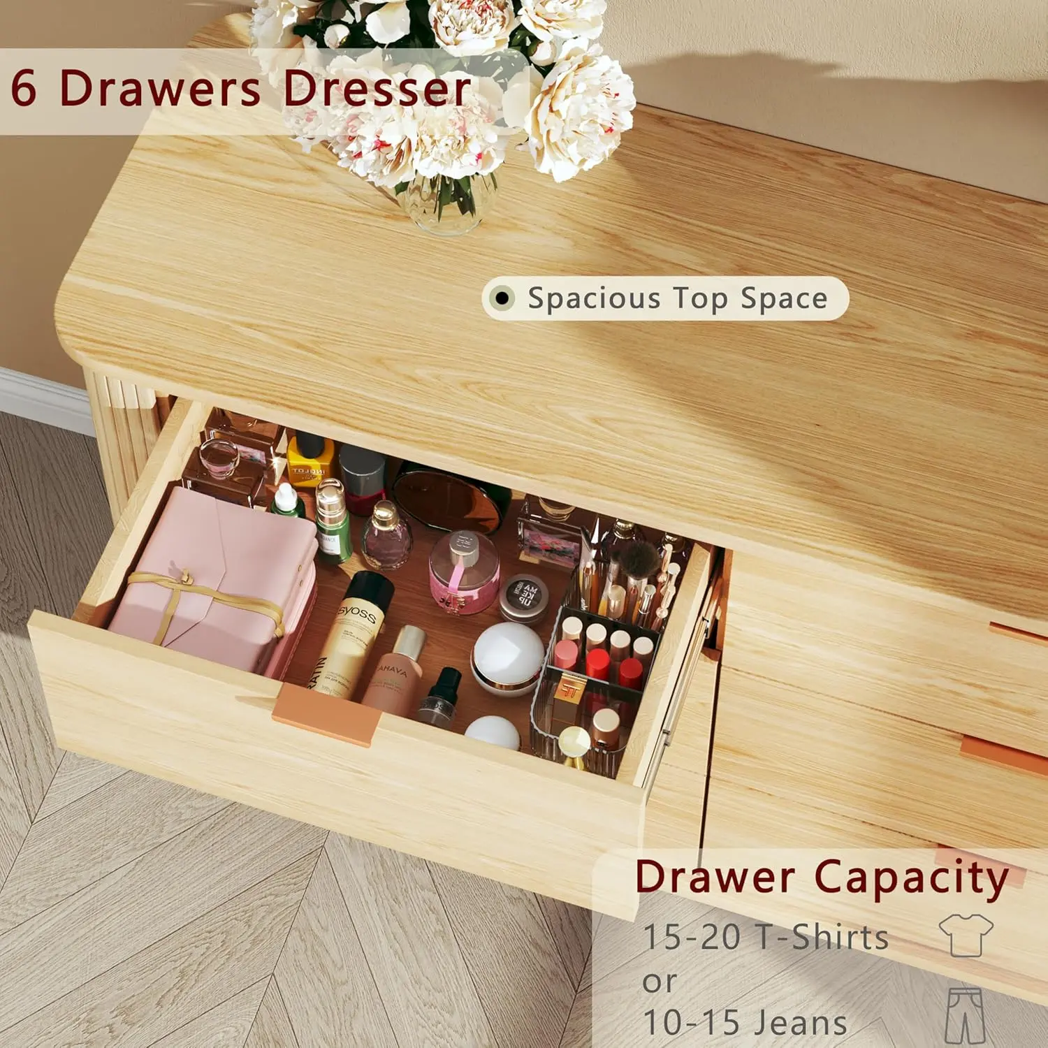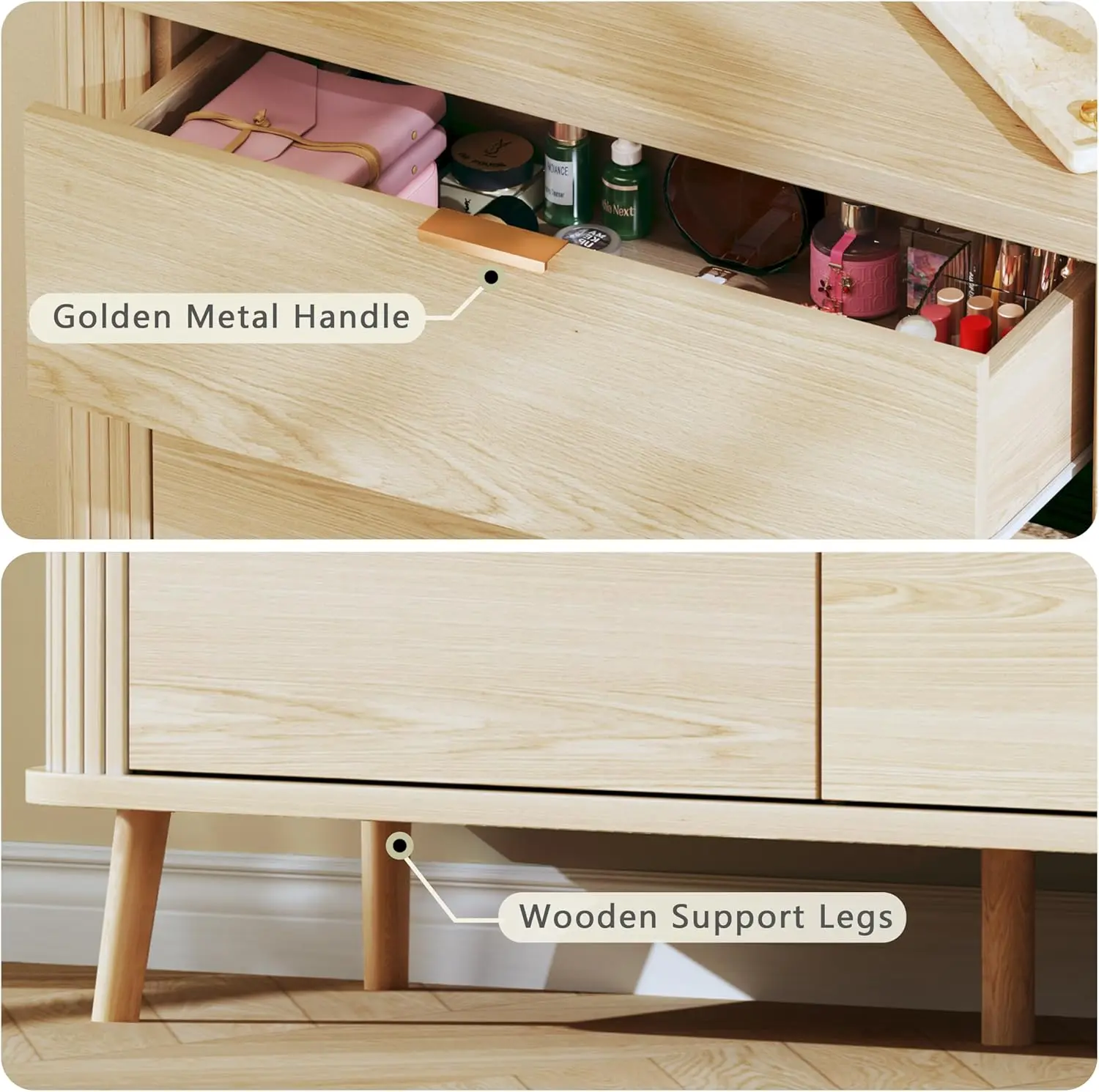 The dresser is exactly as described.. not only does it look high quality fir the price, it also only took two days to receive after placing my order..one of the best items I've purchased from the tiktok store.
