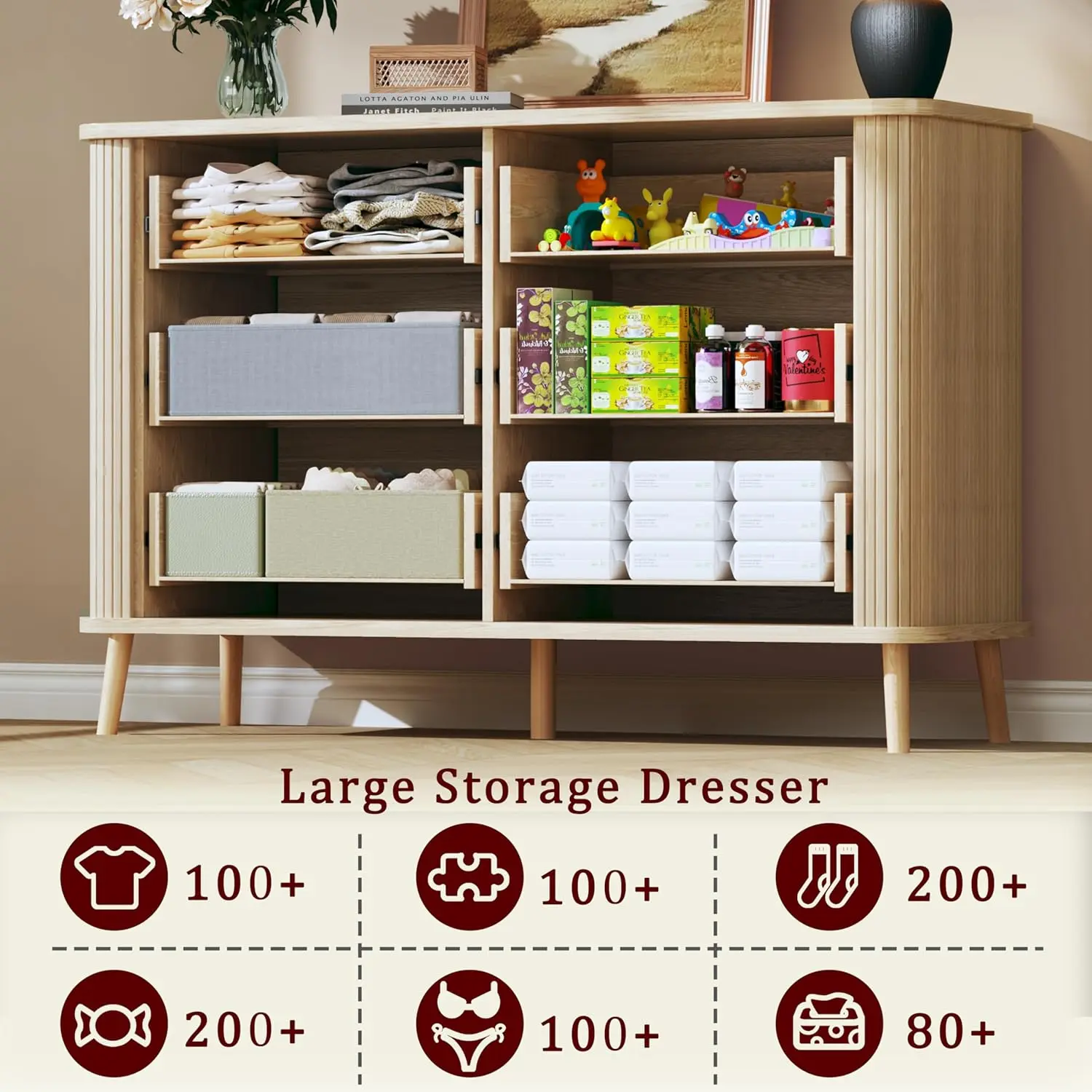 I absolutely love this dresser! The light wood tone and minimalist mid-century design bring such a calm, clean feel to the room✨🫰