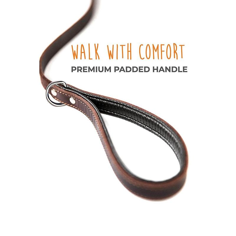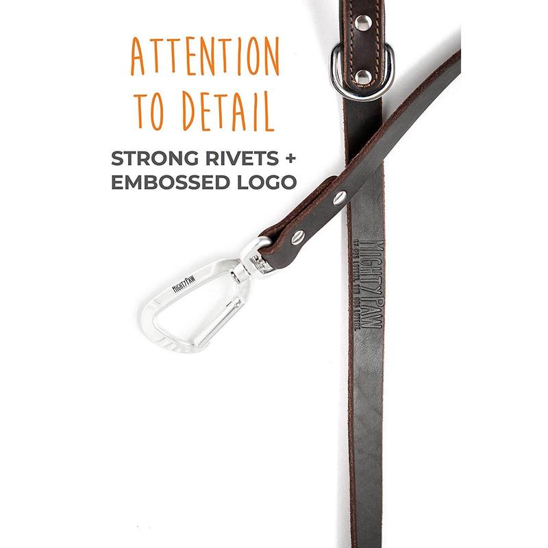 Walk your pup with style and reliability using the Mighty Paw 6-Foot Leather Dog Leash. Made from 100% premium leather in a natural brown color and embossed with the Mighty Paw logo, this leash is both strong and flexible, offering a comfortable grip even with the most active dogs. Its soft, padded handle ensures that your hands remain comfortable during long walks, regardless of how much your furry friend pulls.