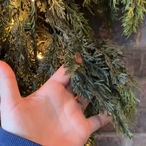 The garland looks like it’s real perfect texture and size! I have two garlands on our fireplace and thinking abt getting some more for our staircase!