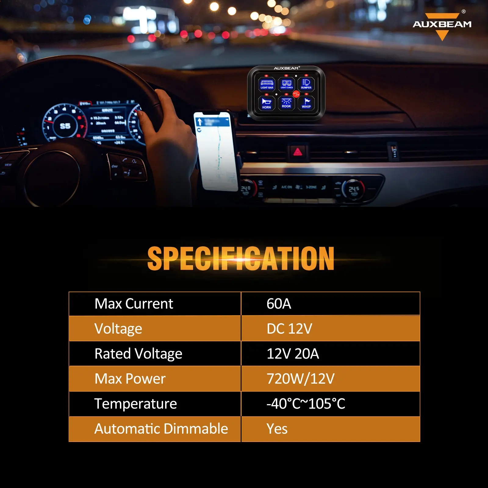 Automatic Dimmable Backlight for Driving Safer. On the road or other bright places, the switch panel will be brighter, so you can see it clearly. In the tunnel or other dark places, the switch panel will be dim, reducing the impact on the driver's vision.