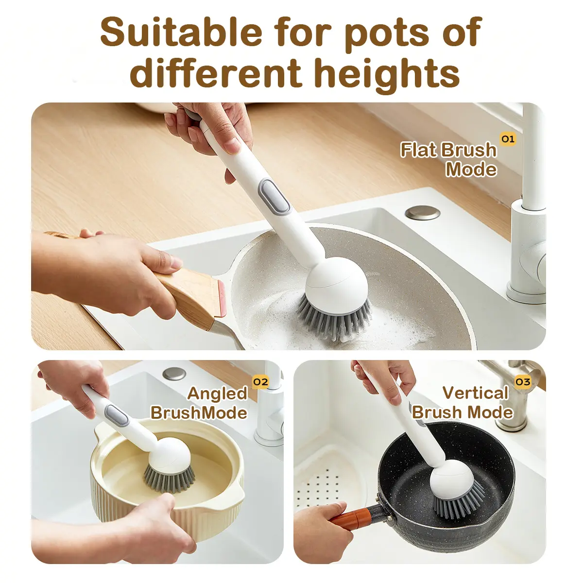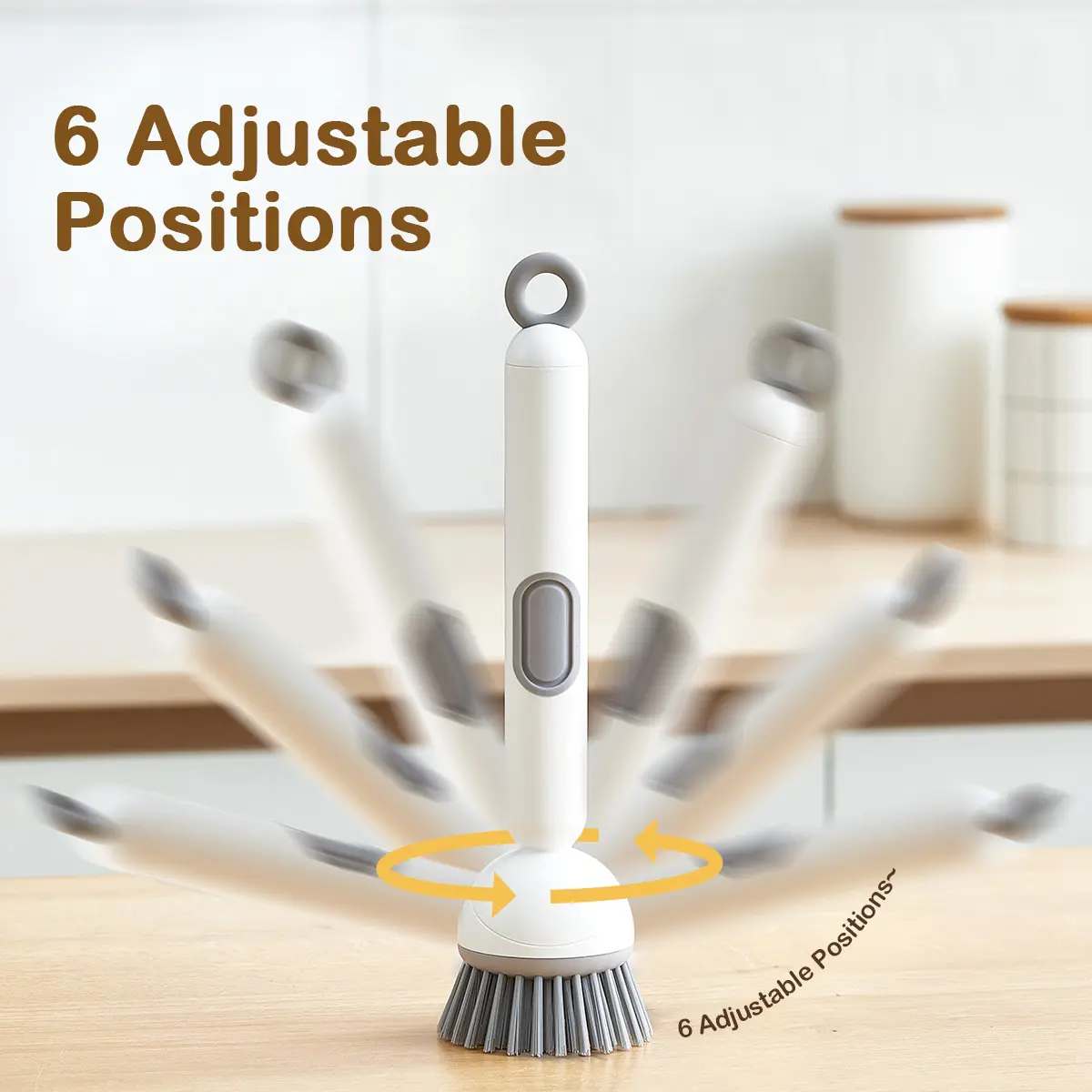This 6-in-1 dish brush offers an adjustable angle and rotating scrub function. Ideal for cleaning pots, pans, dishes, and utensils. The wall mount makes it perfect for kitchen sinks and stoves. Switch between angled and upright modes effortlessly, reducing wrist strain.