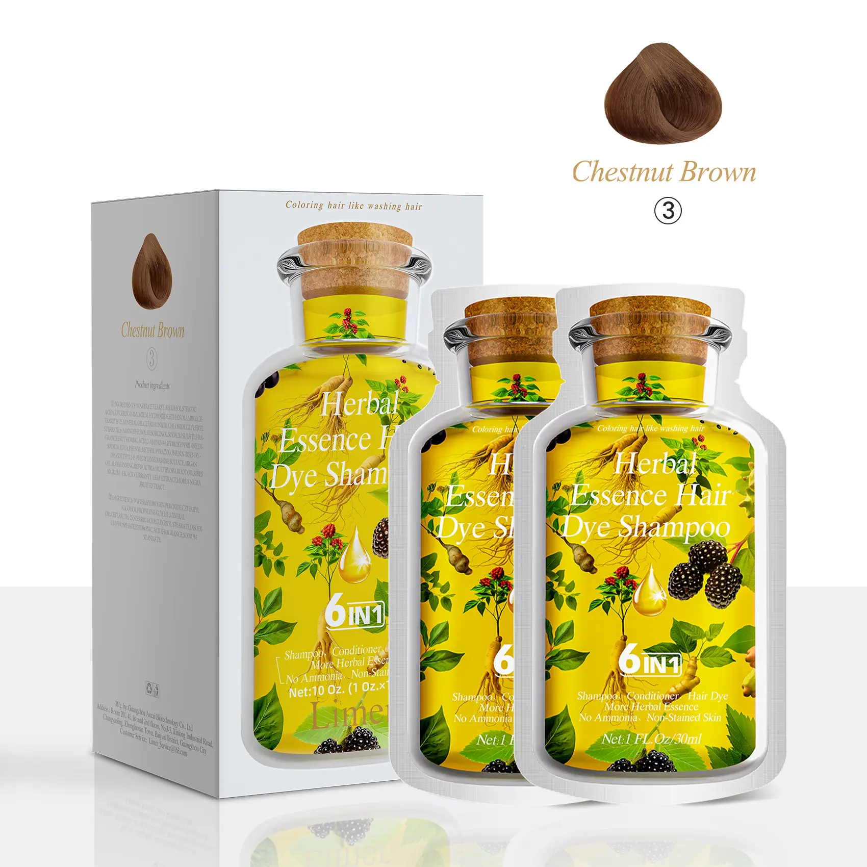 Limer, Chestnut Brown, 6-in-1 Instant Hair Dye Shampoo, Tintes de cabello, Various colors available, Covering Grey Hair, Herbal Ingredients, Ammonia-Free, 6-Plant Extracts, Mild, Quick Hair Dye, For ALL Genders (10pcs)