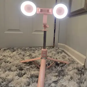 Love this. It helps me keep my phone still. Gives amazing lighting and with how high it goes it gives me amazing angles