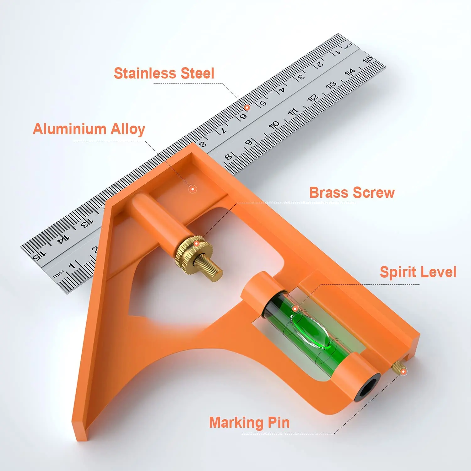 【Multi-function】Suitable for the measurement, combination square can be as a square, depth gauge, scriber, and a level.