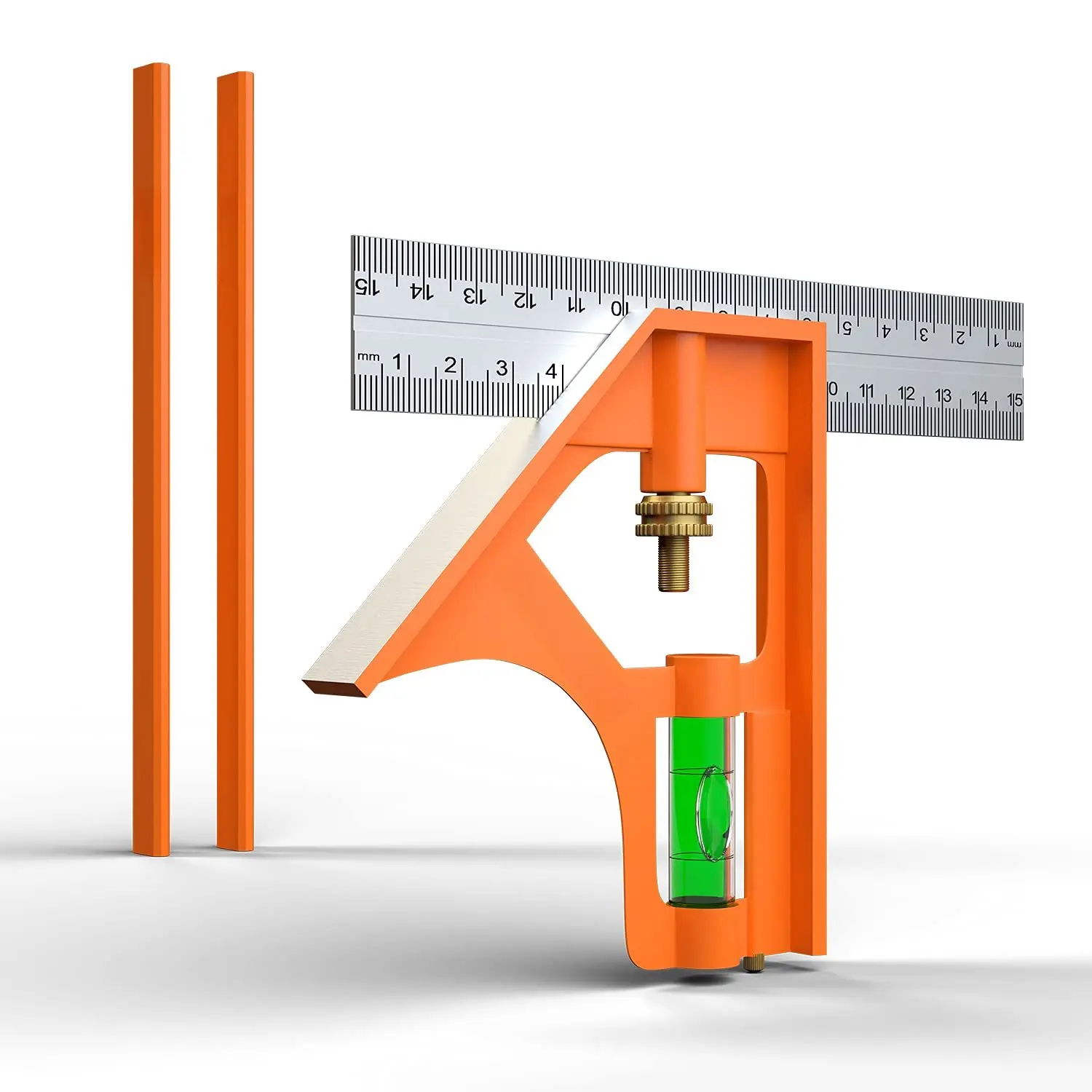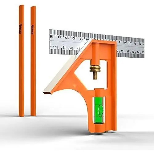 6" Combination Square, 6 Inch 150mm Stainless Steel Combo Square for Accurate and Adjustable Woodworking Measurement with 2 count Carpentery Pencils