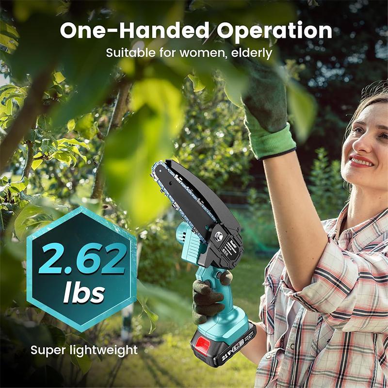 Effortless Control for All Users: Weighing only 2.8 lbs, this small chainsaw is lightweight and easy to handle. Seniors, women, and beginners will appreciate how simple it is to use for pruning branches, shaping bushes, or clearing small logs—no prior experience needed