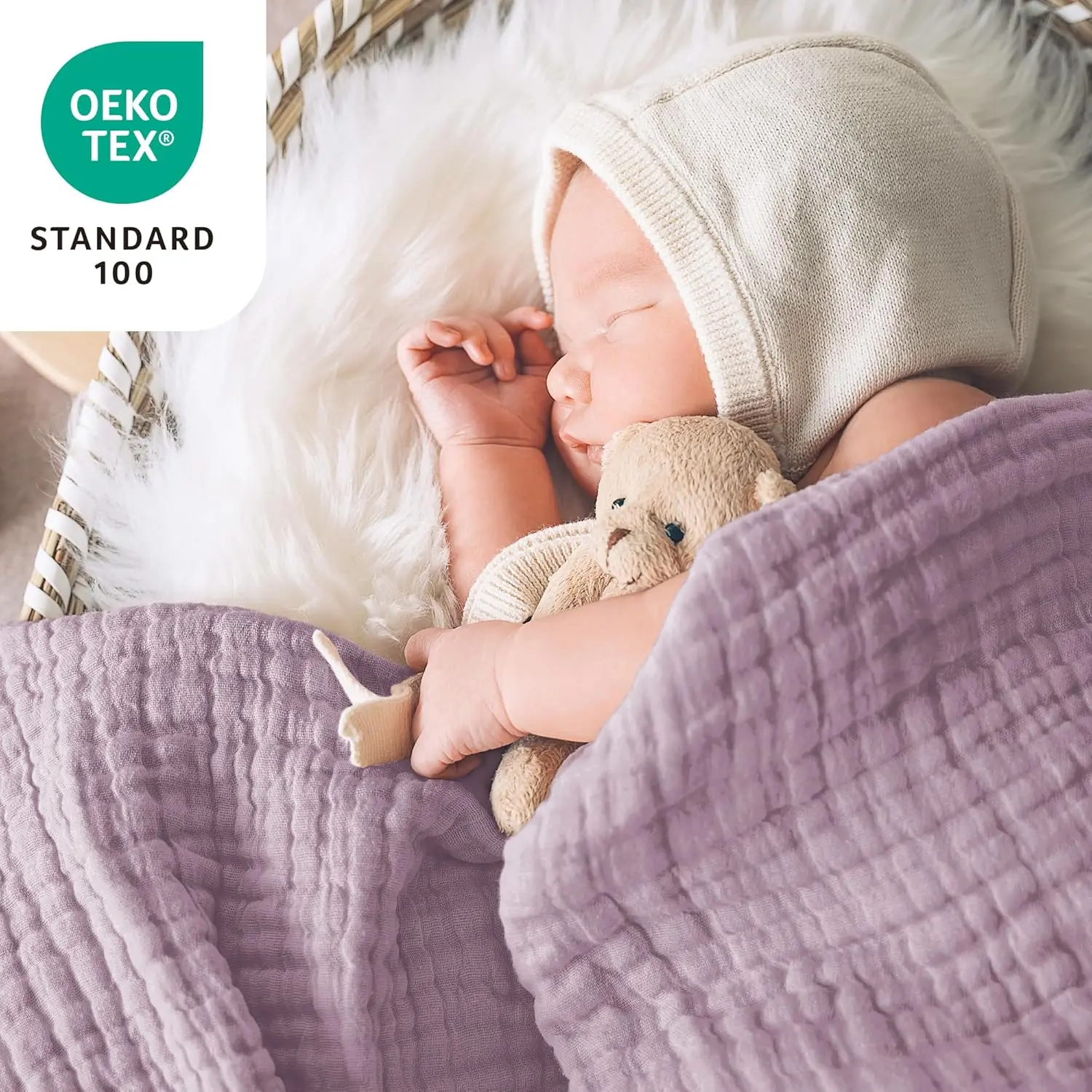 Our Muslin Throws are made with OEKO-TEX 100 Standards.It ensures that our products are environmental and not harmful to your skin.It offer a luxurious comfy feel and you will no night sweats, perfect for co-sleeping with baby.