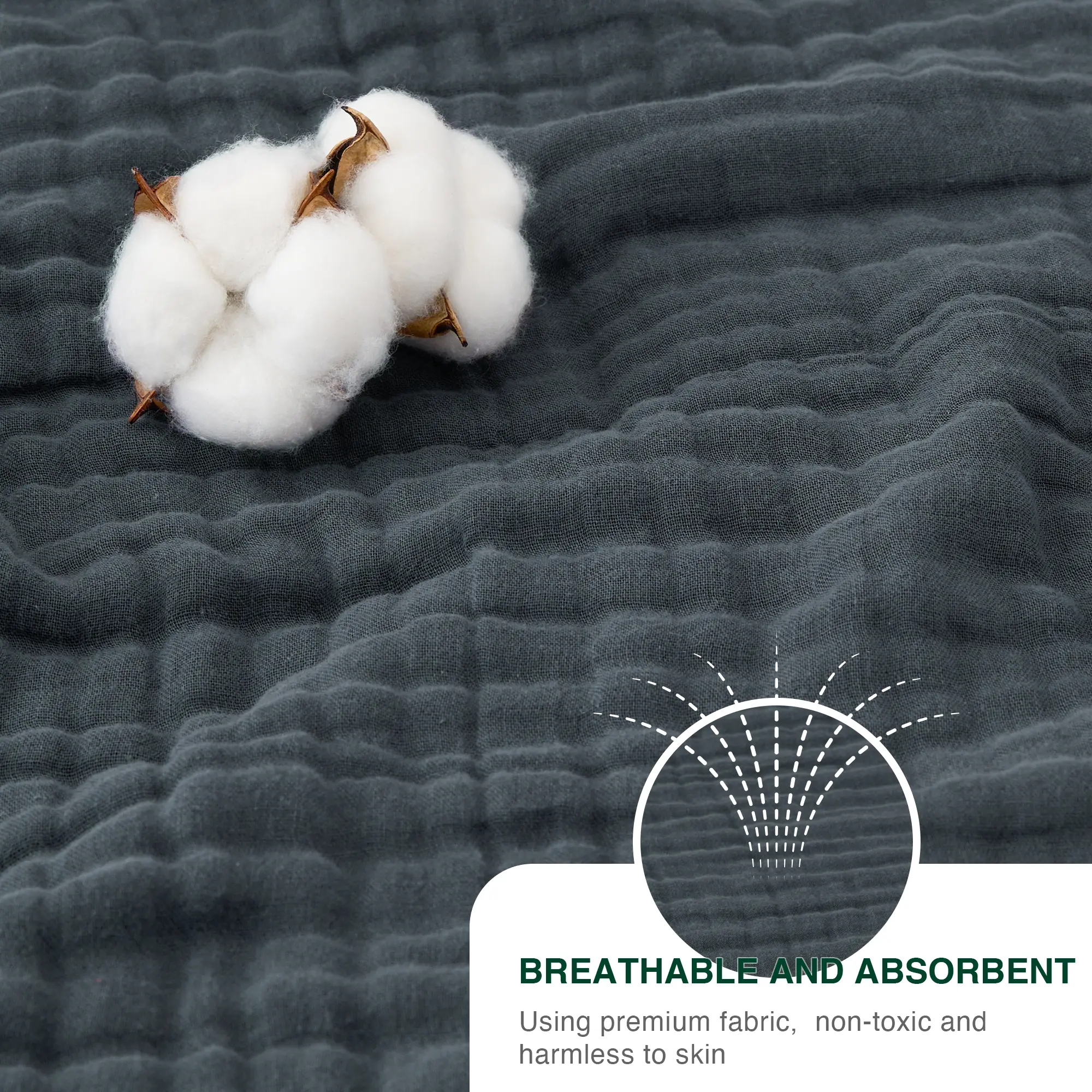 Breathable and Soft - Our muslin blanket is made of 100% cotton, the soft blanket is extremely breathable and moisture wicking and is gentle on sensitive skin, promoting a deep and restful sleep while preventing overheating.