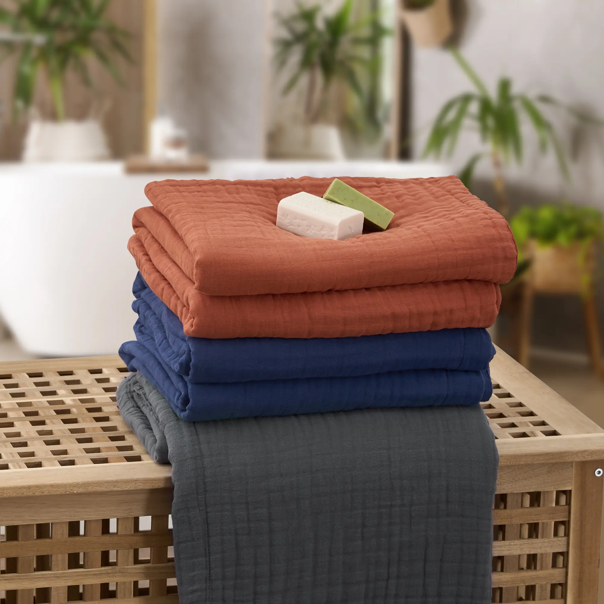 Easy to Care - Please wash it separately in cold water using mild detergent. Tumble dry on low setting and no bleach. Please note that due to the design of the bubbles, the muslin blanket will be softer and full of elasticity after washed and dried, and the actual size of the product may deviate a little from the size we labeled.