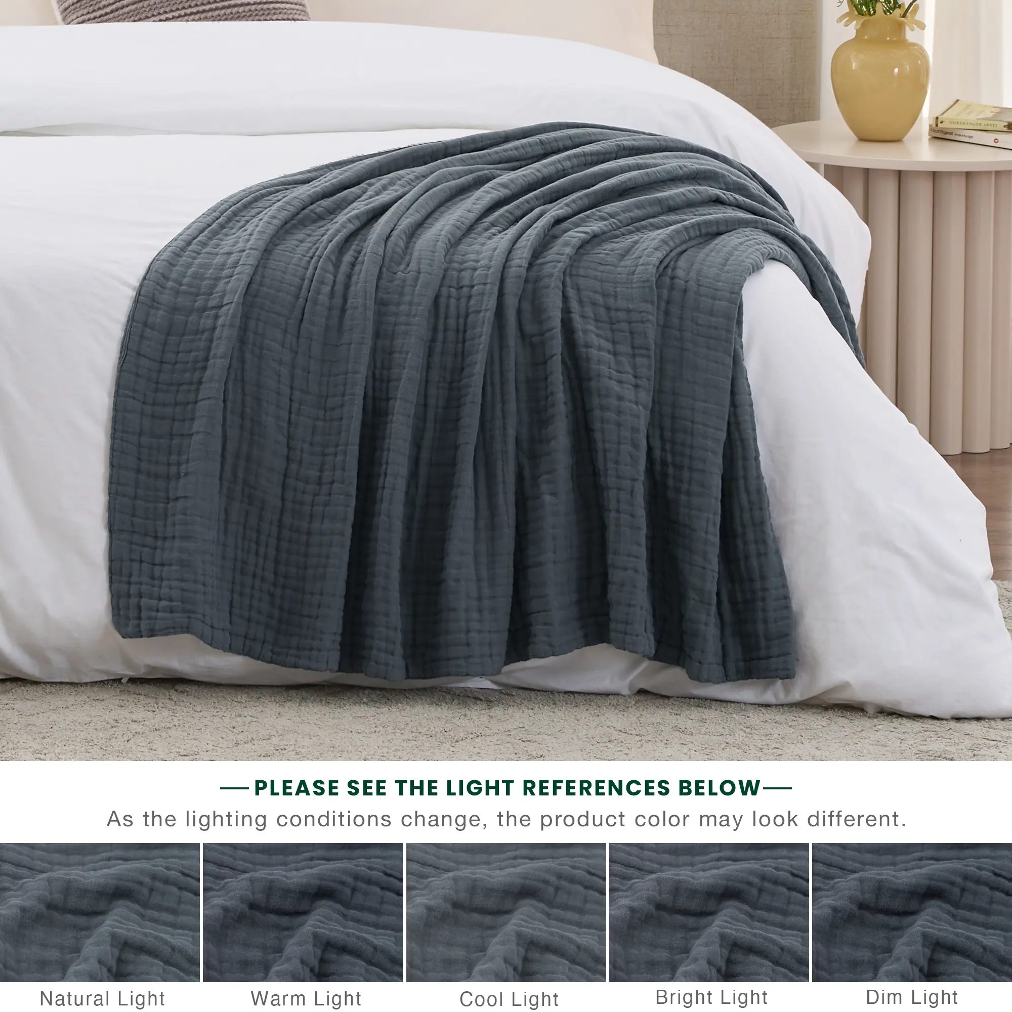 Multiple Color Options - We offer cotton blankets in a variety of colors to better match your bedroom, living room or personal style, including blue-gray, white and beige. This blanket is manufactured without the use of harsh chemicals, making it safe for you and the environment to use.