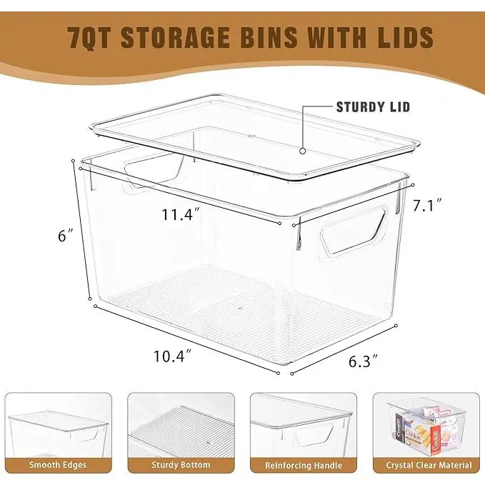 6 Pack Clear Storage Bins with Lids, 7 Quart Stackable Storage Boxes for Storage and Organization, Plastic Storage Containers with Lids, Plastic Bins with Handles for Office, Bedroom, Study Room