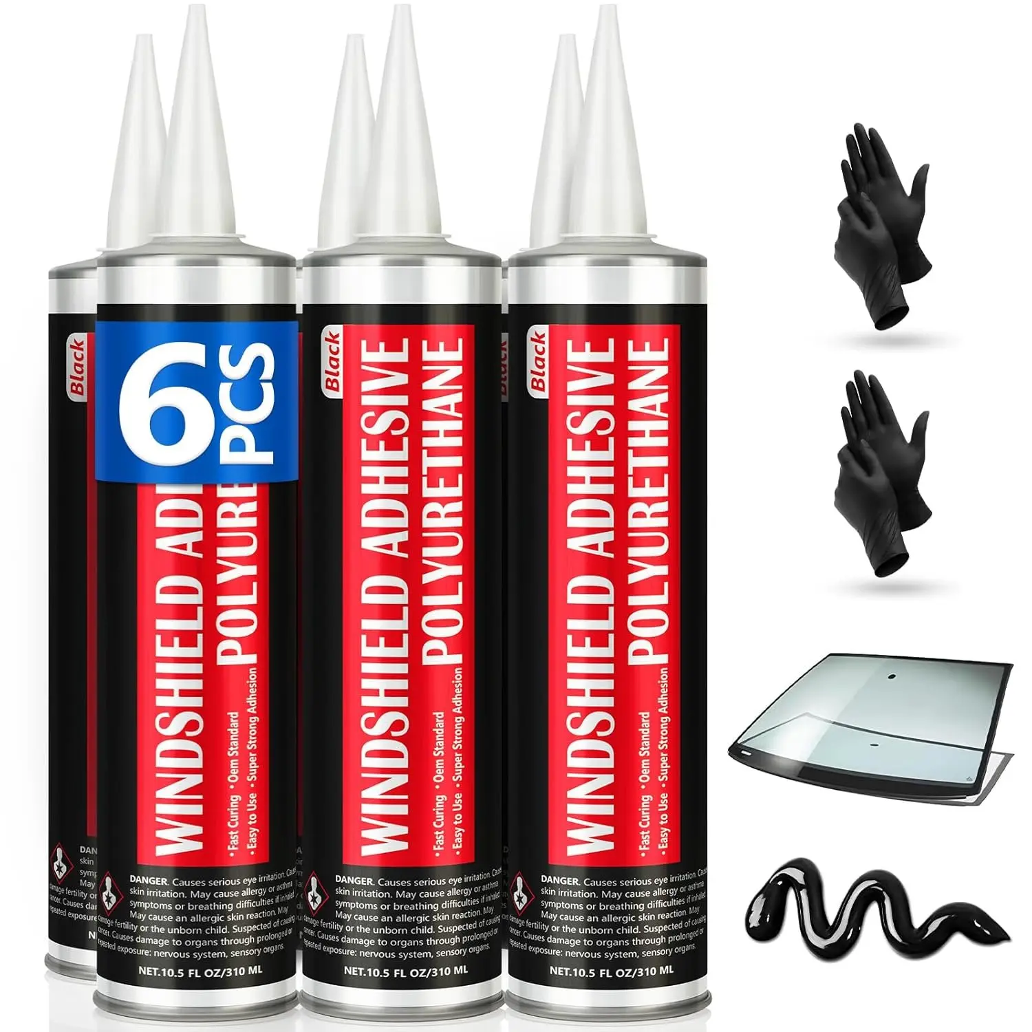 Complete Convenient Kit:Our windshield glue adhesive includes SIX 310ml cartridges of windshield adhesive sealant, SIX application nozzles and TWO pairs of gloves,with these tools, Anyone can achieve ,professional results.