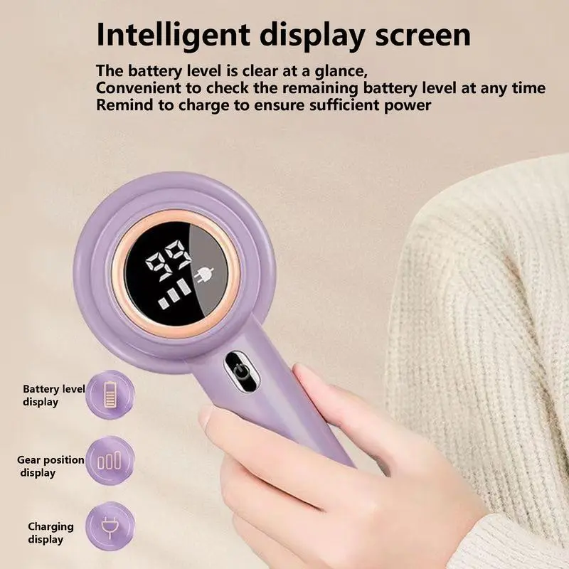 6-Pack Replaceable Blades Fabric Shaver, Rechargeable Portable Lint Remover with LED Display, Removes Pilling From Clothes, Furniture, and Blankets