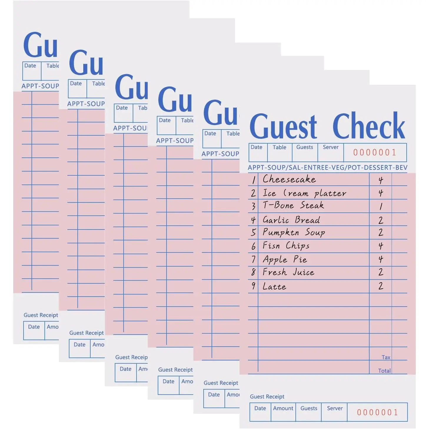 : Made from sturdy, high-quality paper, Not Drop and ensure clear, readable handwriting on both sides. The whole-page printing and layout are ideal for any restaurant, with a "THANK YOU" note on the of the guest checks