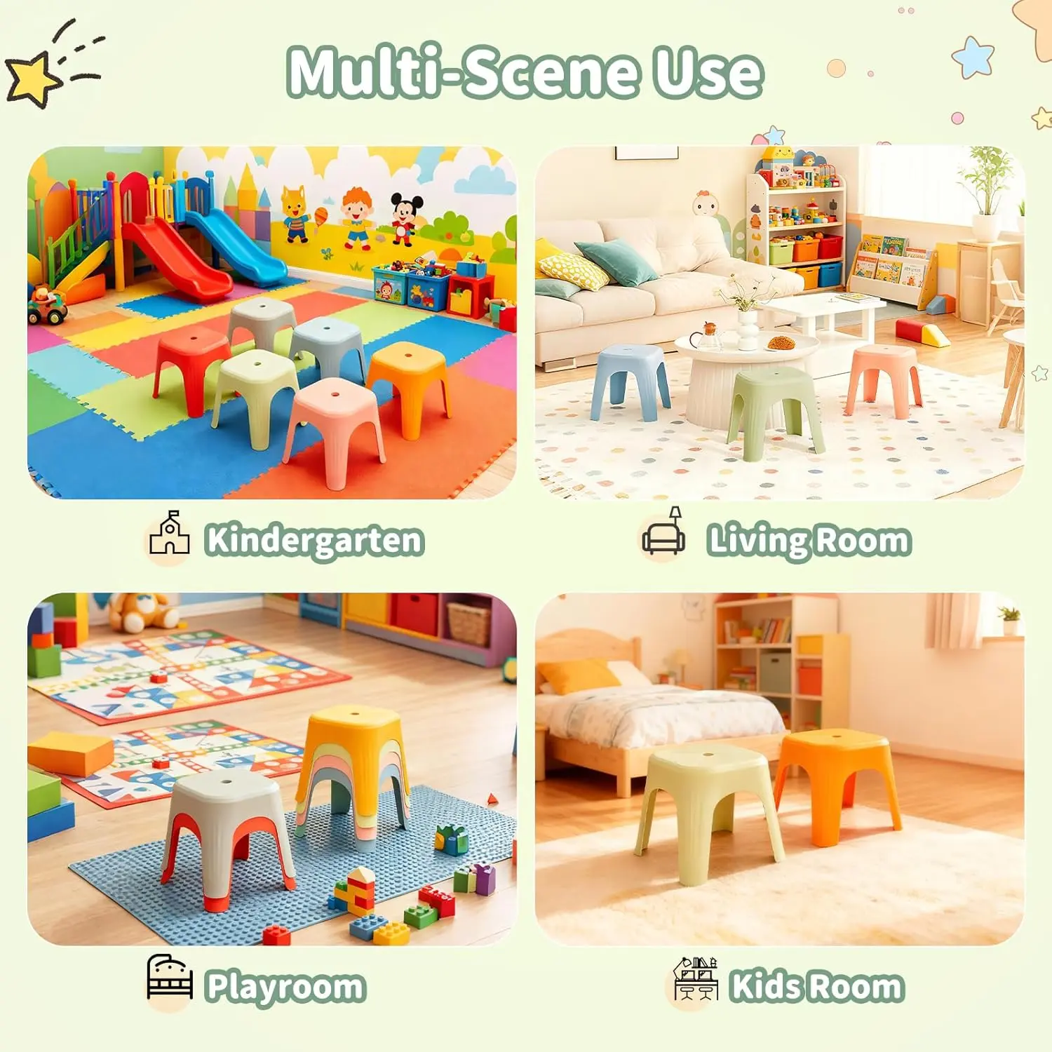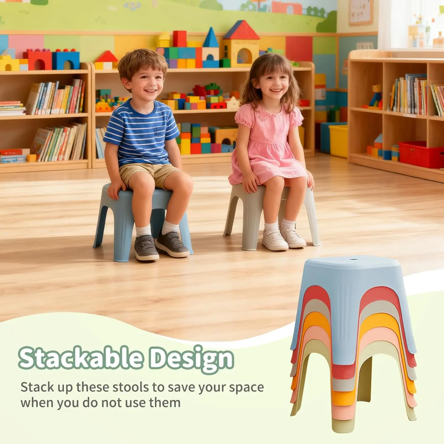 6 Pack School Plastic Stackable Stools, 11.8 Inch Height Colorful Nesting Stools, Portable Backless Stool for Classroom Students, Flexible Seating Chairs for School Home Office