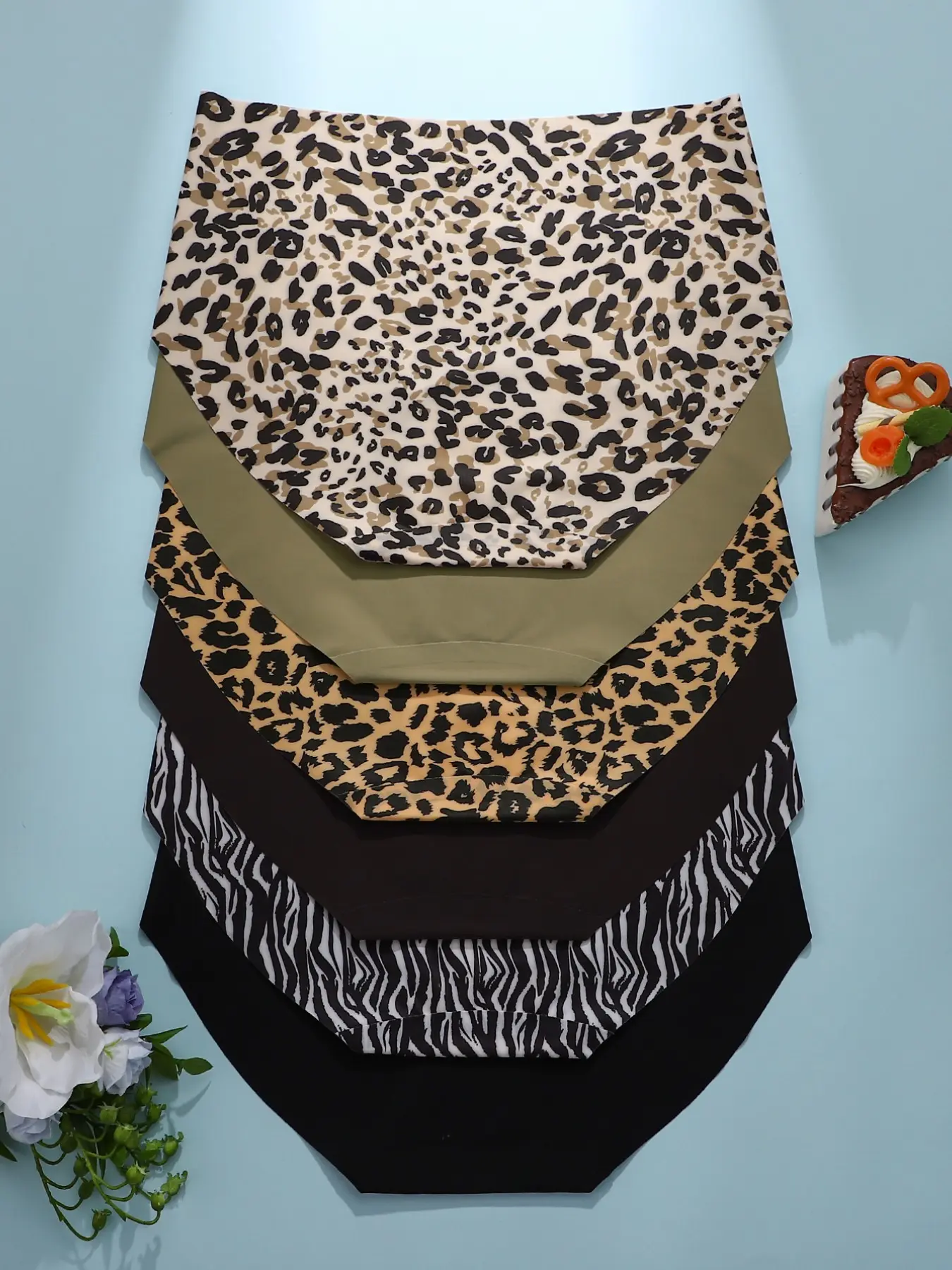5. 6 Pack Seamless Adhesive Underwear, Leopard and Zebra Print with Heart Cutout Design, Invisible Comfortable Fit for All Day Wear