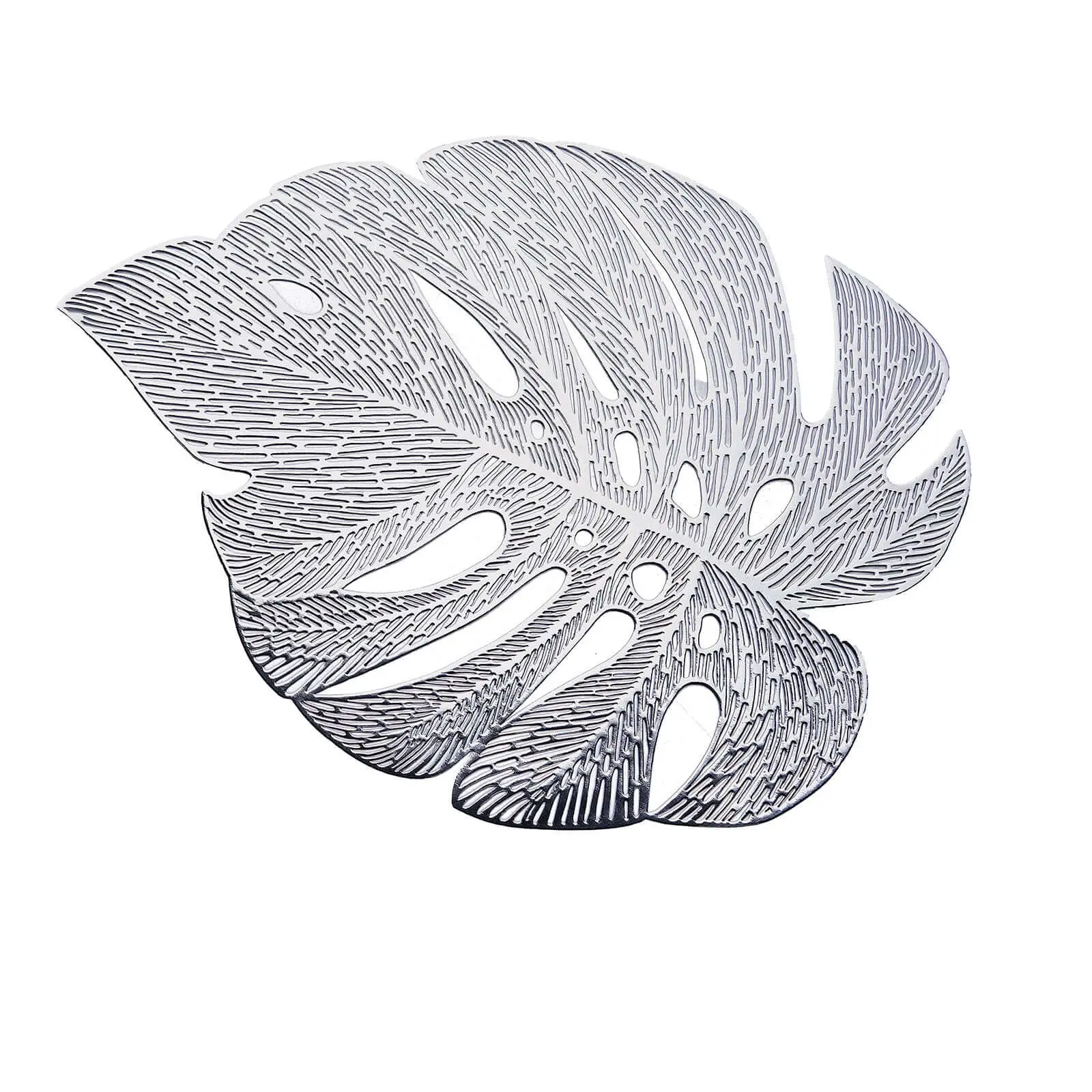 6-Pack Vinyl Dining Table Mats 18" Monstera Leaf Design Silver - Non-Slip Placemats