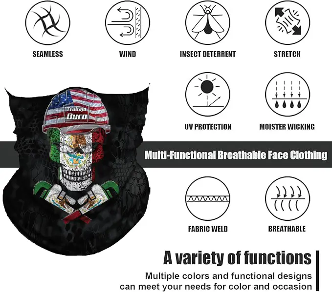 Β·γ5+ Ways to WearγOne piece, endless possibilities! Wear it as a neck gaiter, face cover, headband, pirate-style bandana, or balaclava. Fits snugly under helmetsβgreat for motorcyclists, climbers, and outdoor workers.