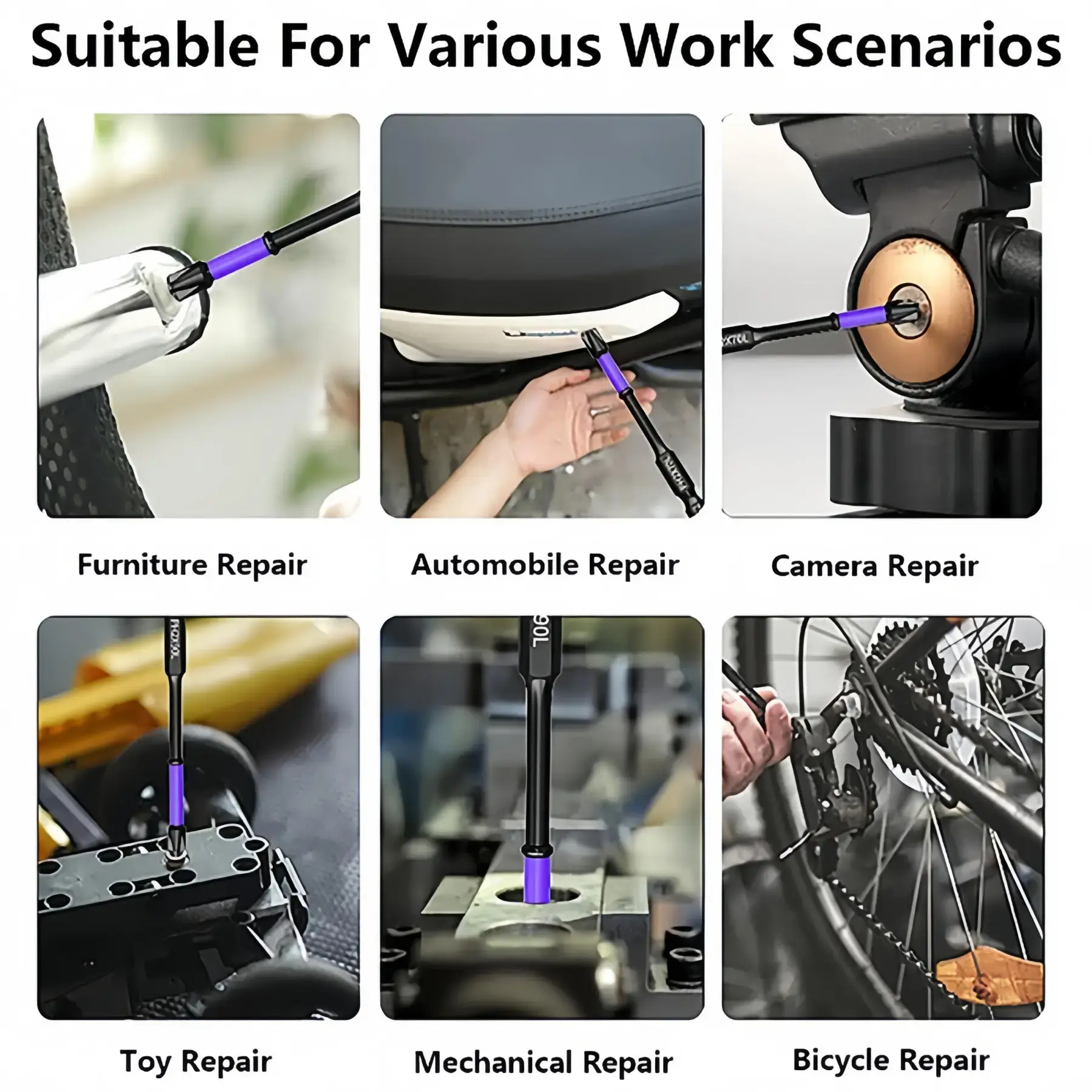 ·【Wide Range of Applications】These Bits are versatile and compatible with various tools such as impact drivers, electric screwdrivers, manual screwdrivers, 1/4" driver screwdrivers, corded drills, cordless drills, hand screwdrivers, electric drills, air drills, and more. They are suitable for a wide array of applications, including mechanical equipment, automobiles, motorcycles, bicycles, furniture, and electronic equipment, among others.