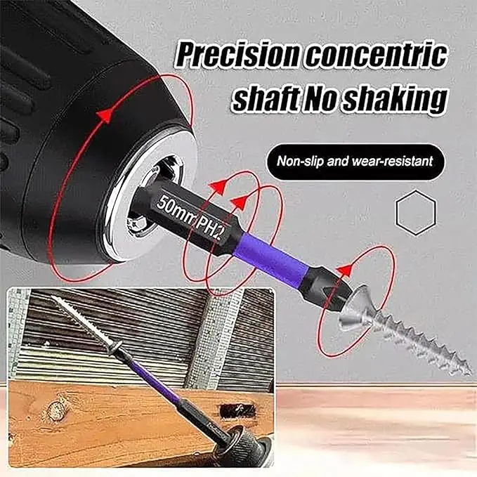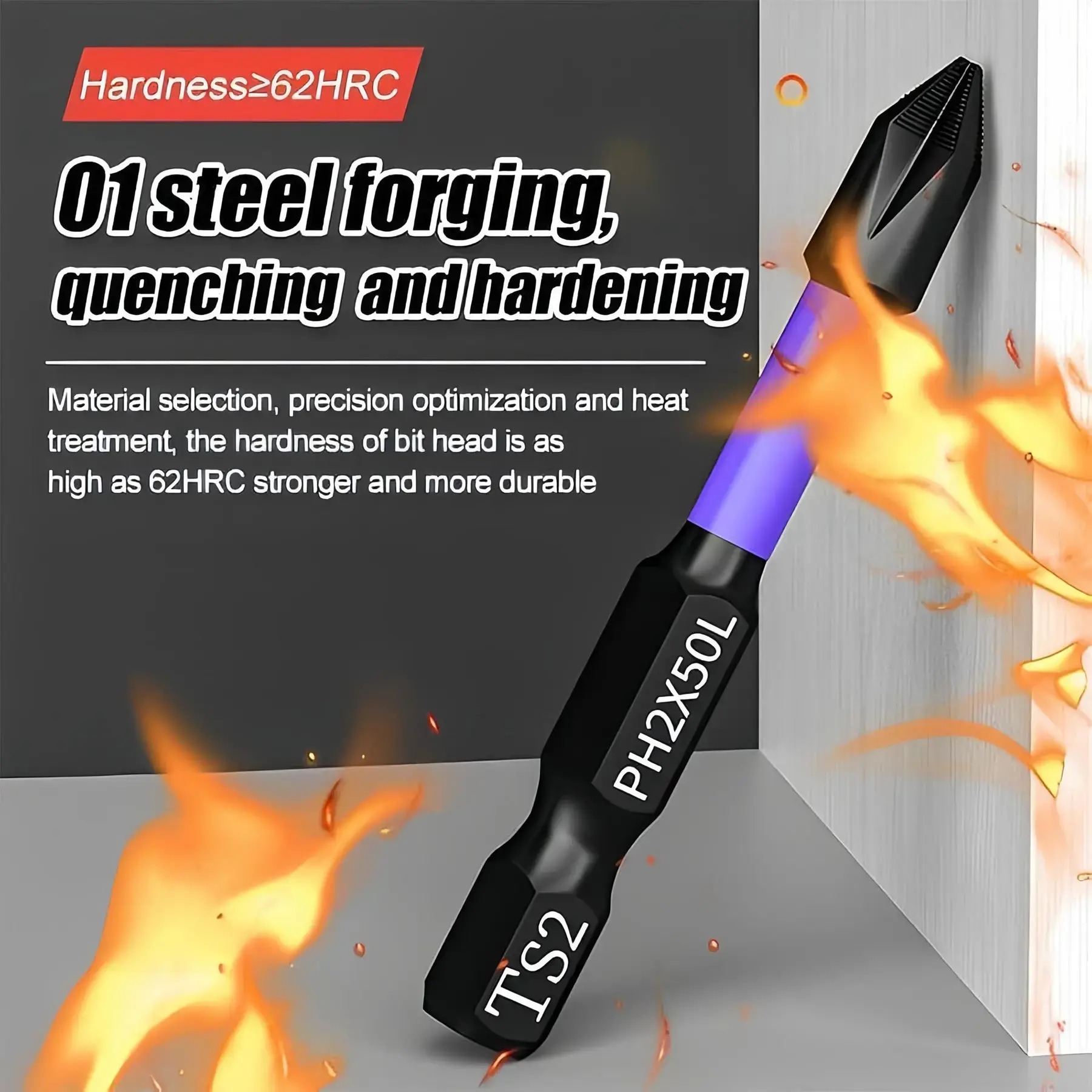 ·【Anti-Slip And Shock-Proof Bits With Phillips Screwdriver Bits】Anti-Slip And Shock-Proof Bits With Phillips Screwdriver Bits are crafted from high-quality S2 steel, ensuring exceptional hardness, wear resistance, and impact resistance. They are built to withstand high-impact and high-strength screwdriving tasks, making them particularly well-suited for screwdrivers, especially impact drivers.